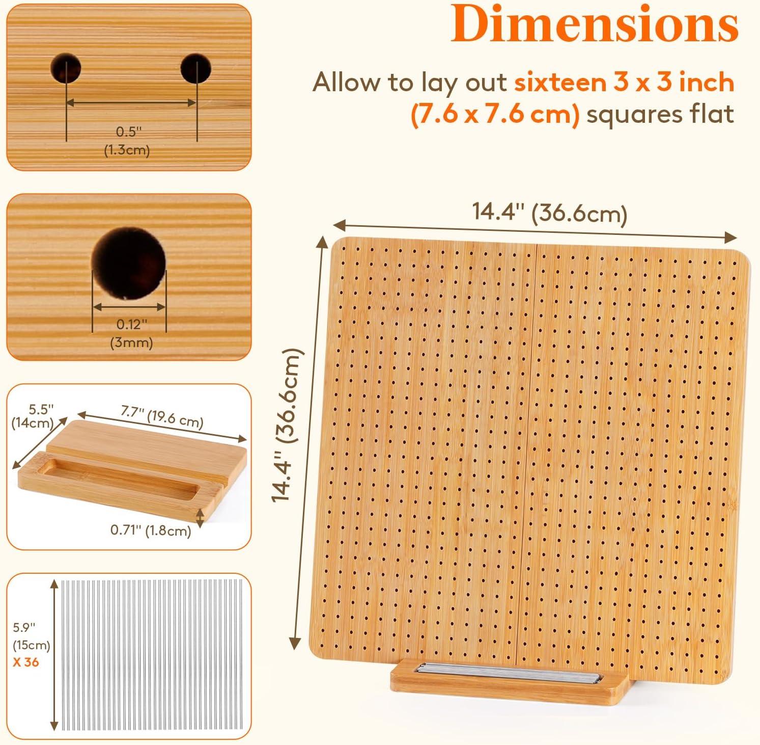 Lifewit 11.8″ Crochet Blocking Board with 20 Pegs, Bamboo Granny Square Blocking Board for Knitting and Crochet Projects, Blocking Mats for Crocheting, Crocheting Accessories Gifts for Crocheters(14.4″)