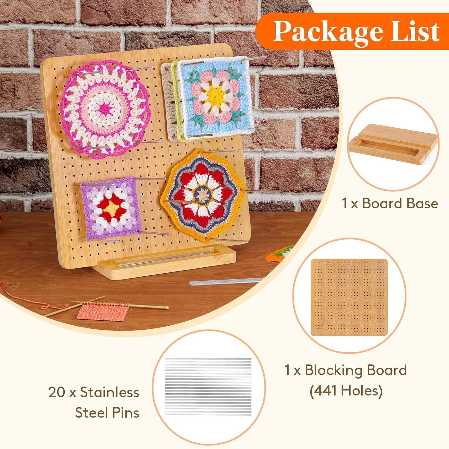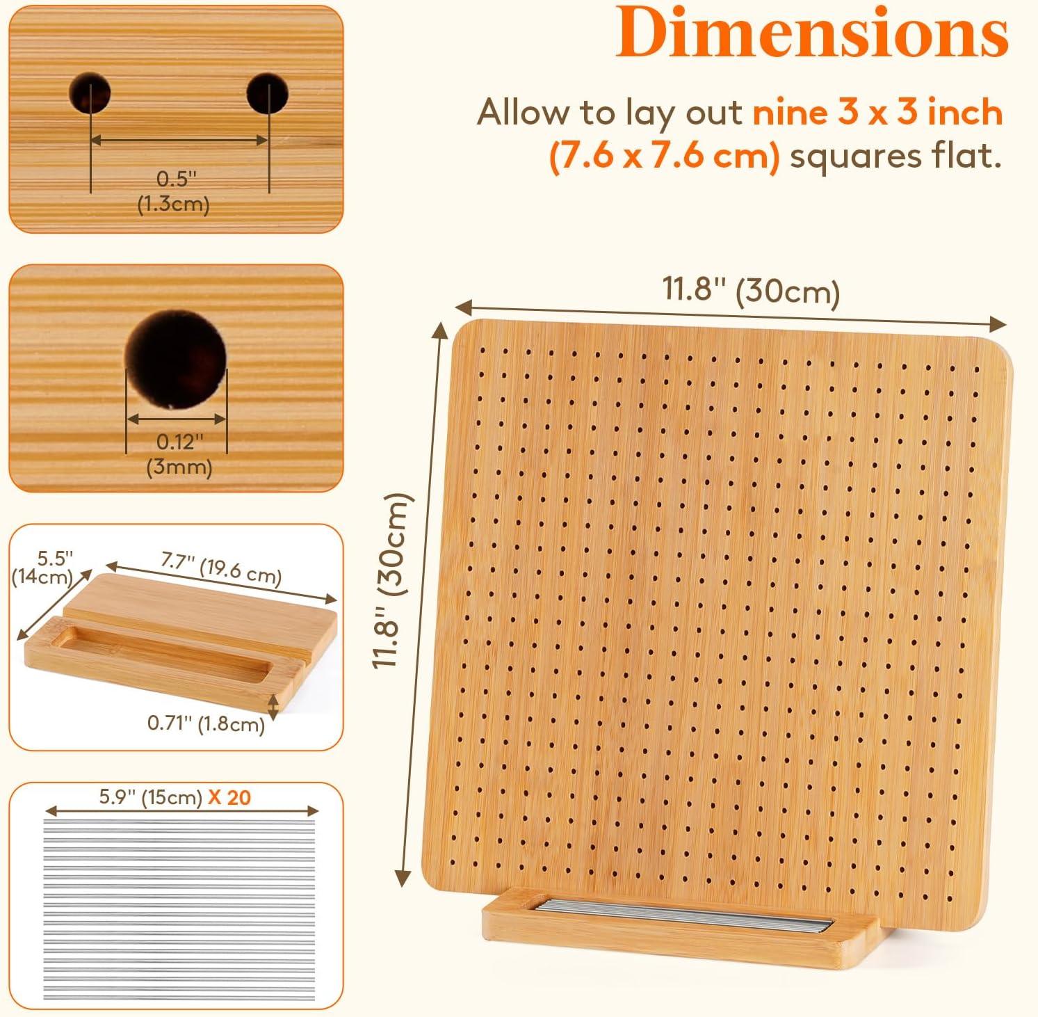 Lifewit 11.8″ Crochet Blocking Board with 20 Pegs, Bamboo Granny Square Blocking Board for Knitting and Crochet Projects, Blocking Mats for Crocheting, Crocheting Accessories Gifts for Crocheters(5.9″)