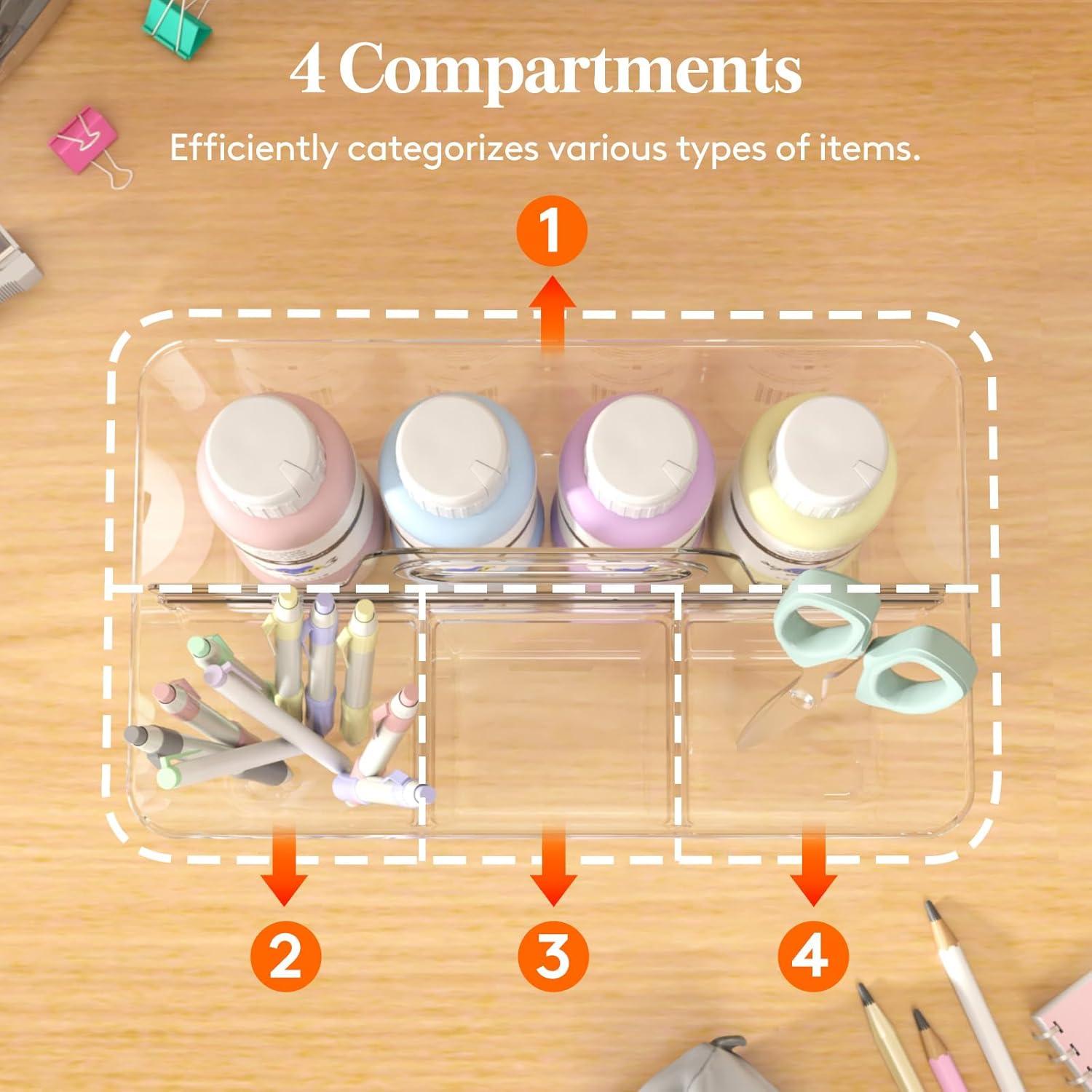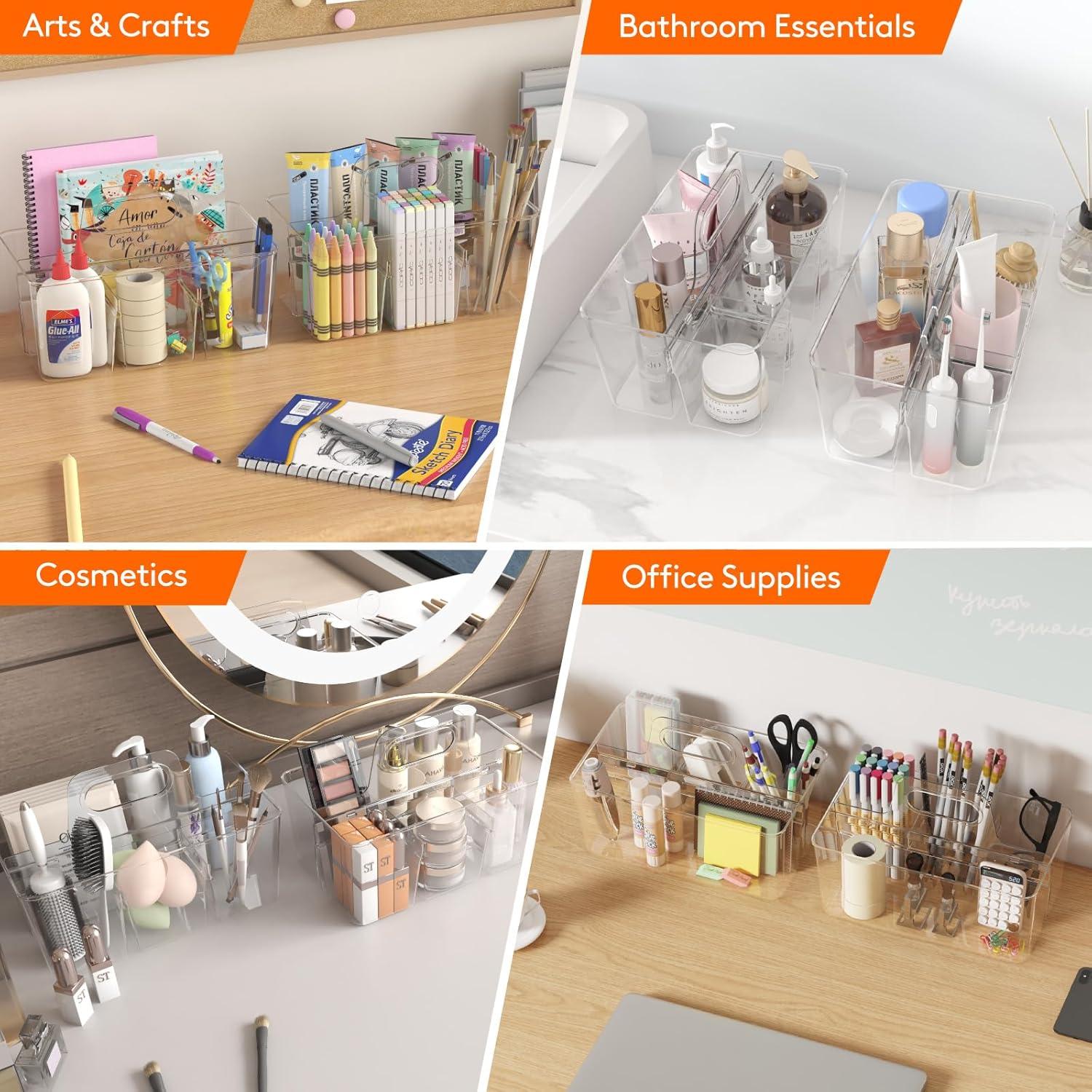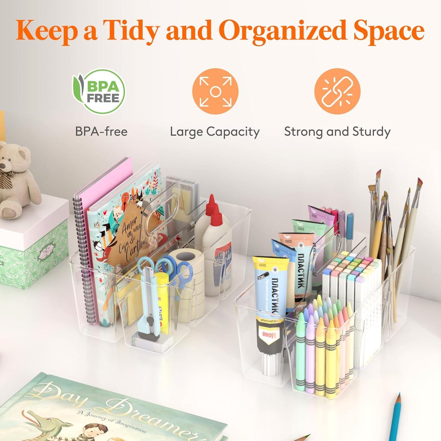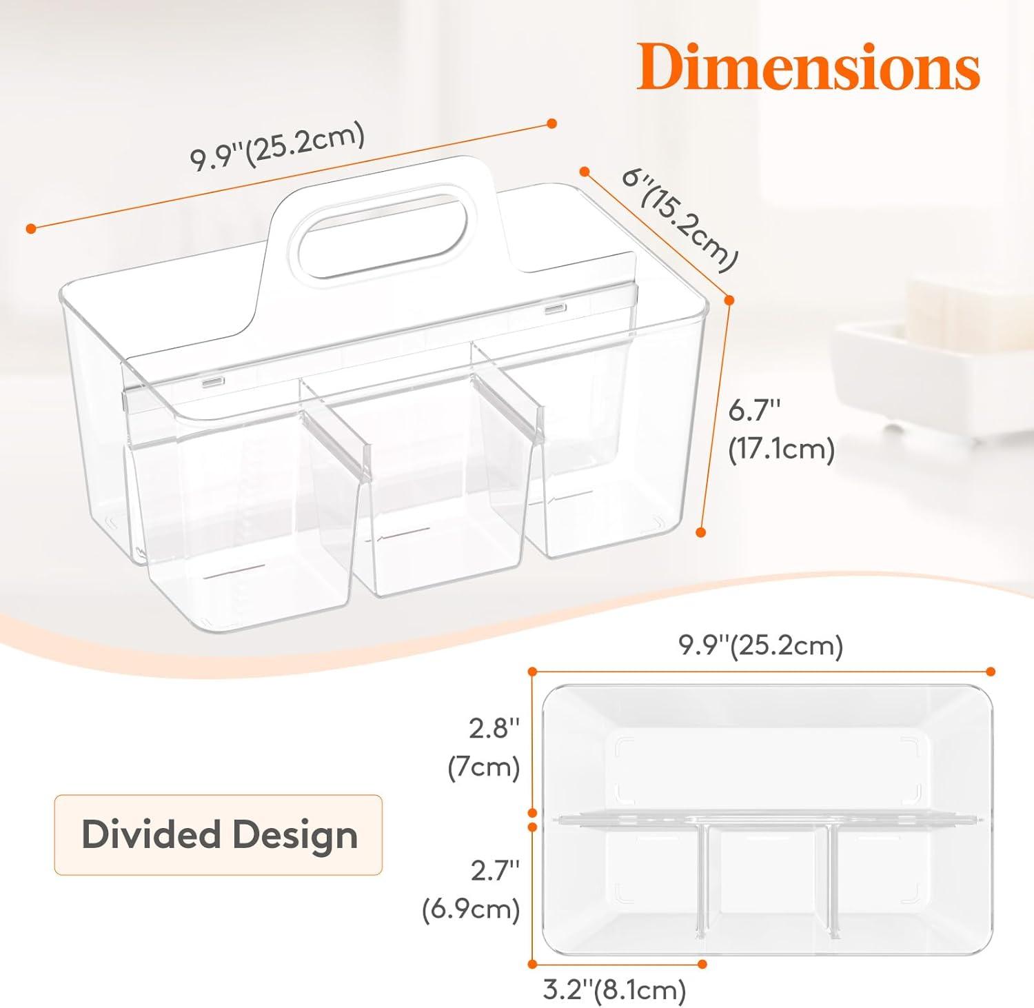 Lifewit 2-Pack Plastic Divided Caddy Organizer with Handle, Portable Art Supply Storage Organizer for Craft Supplies, Cosmetics, Holds Pencil, Crayon, Brushes, Hair Product, Dorm Shower Caddy, Clear(Clear)