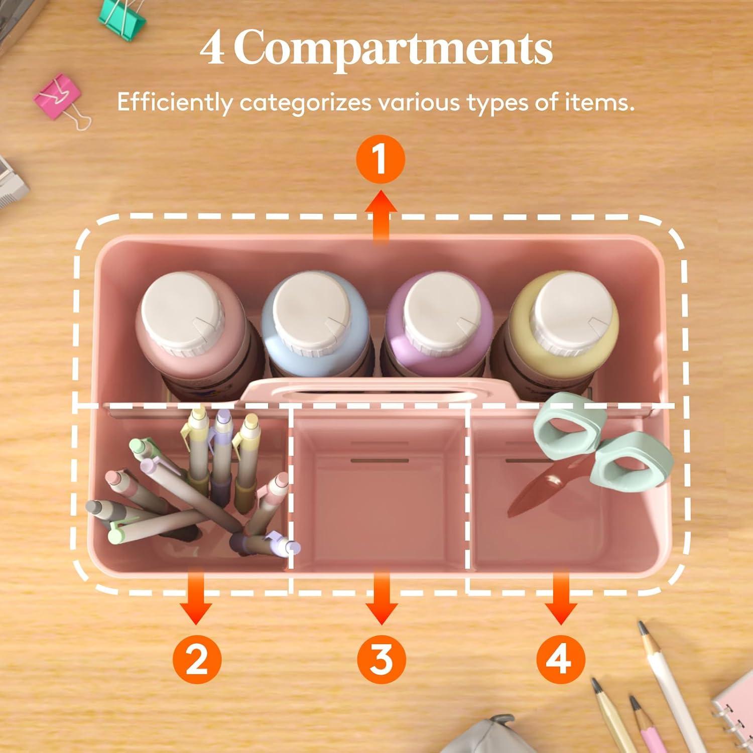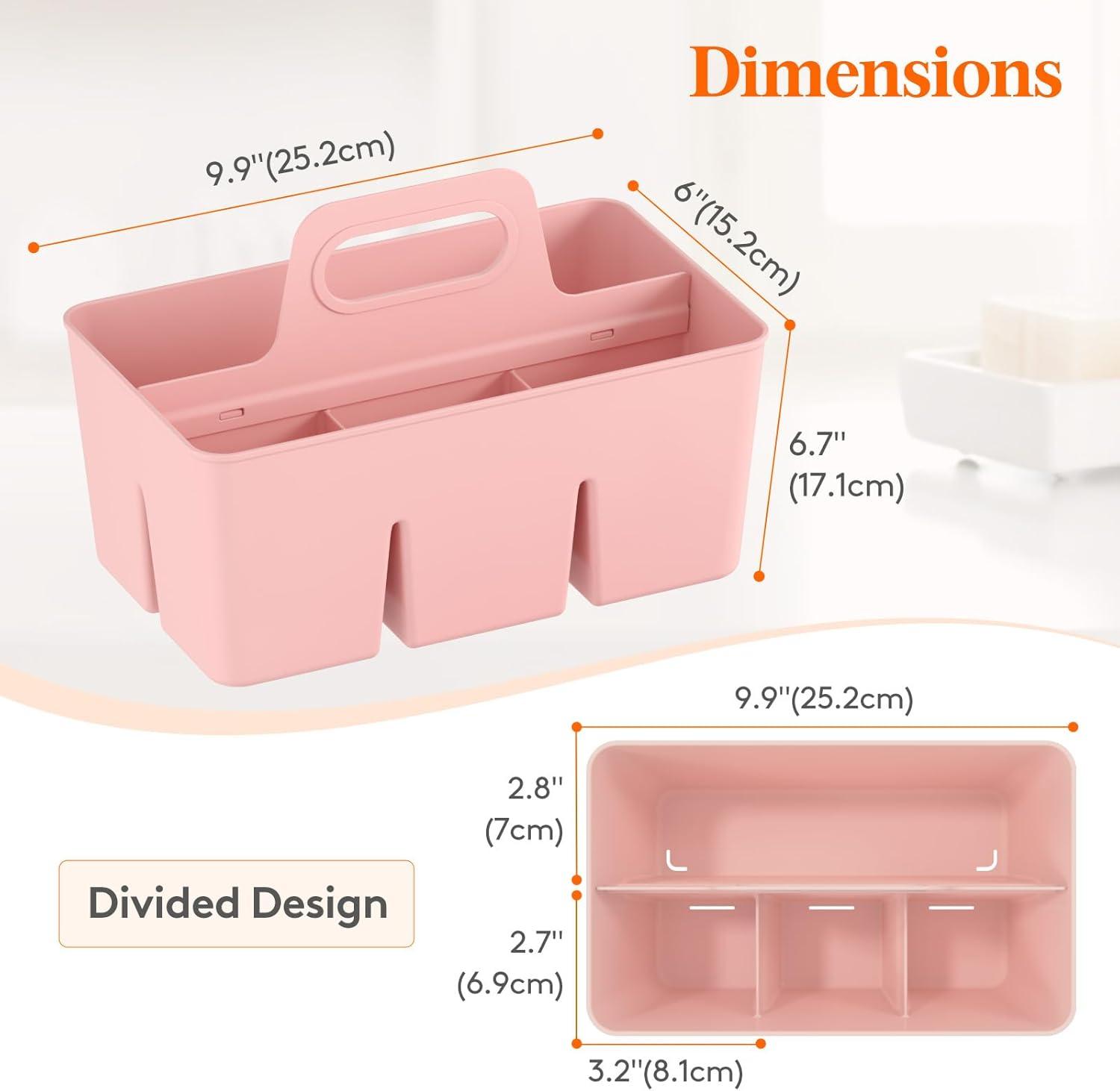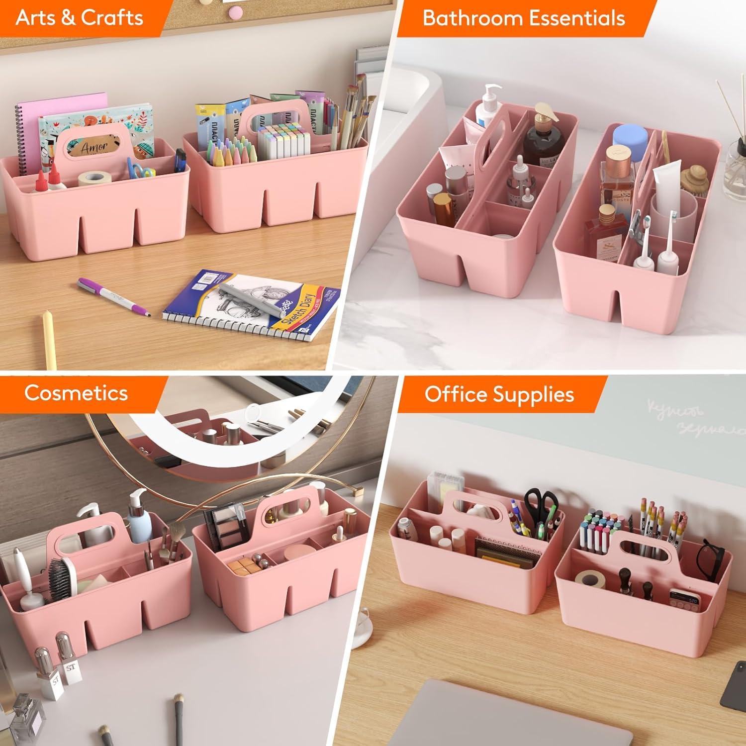 Lifewit 2-Pack Plastic Divided Caddy Organizer with Handle, Portable Art Supply Storage Organizer for Craft Supplies, Cosmetics, Holds Pencil, Crayon, Brushes, Hair Product, Dorm Shower Caddy, Clear(Pink)