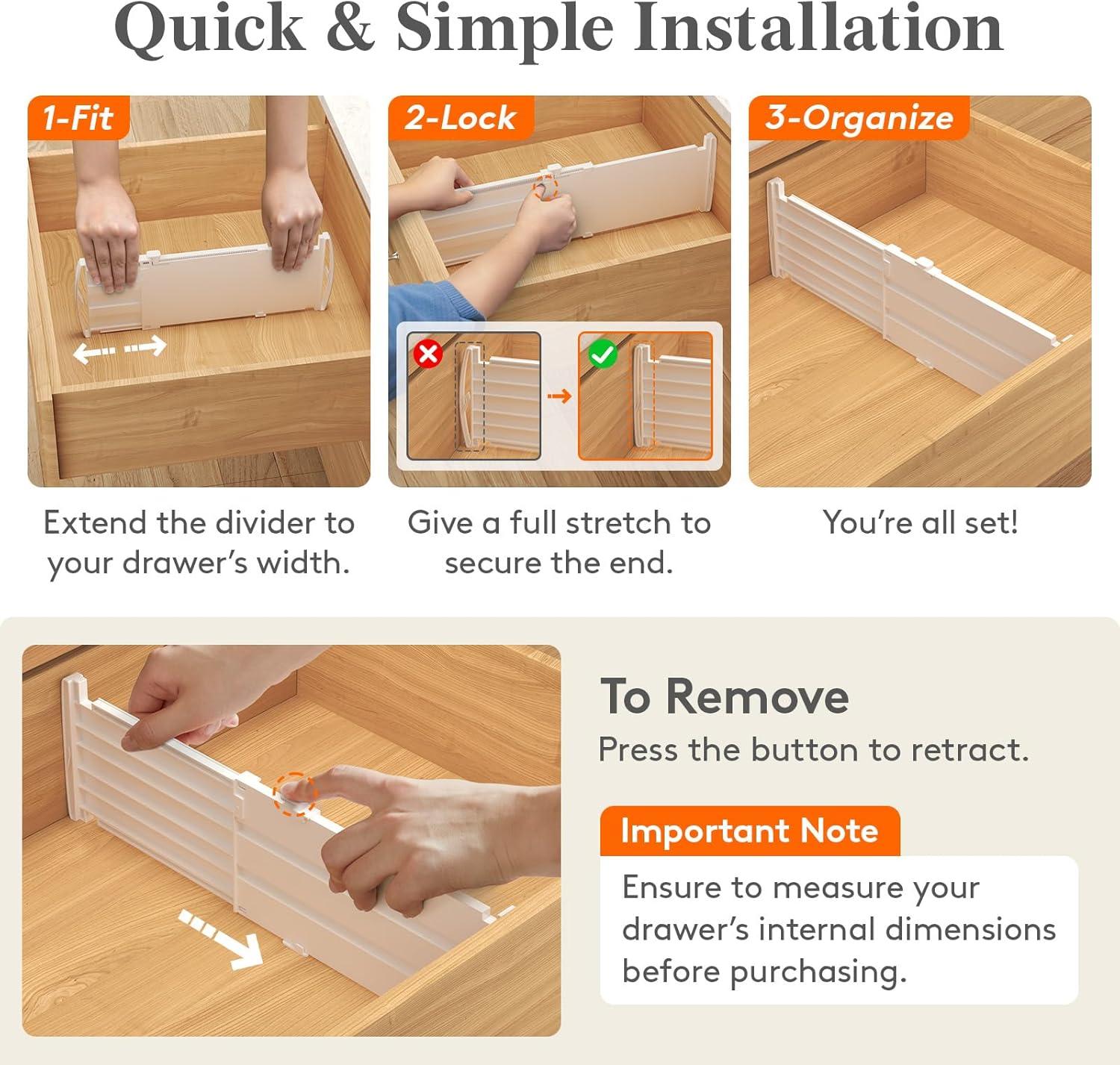 Lifewit 4 Pack Deep Drawer Dividers 8″ High, 13.8-22.5″ Adjustable Dresser Drawer Divider, Plastic Drawer Organizer for Clothes, Tall Drawers Separators for Dresser, Kitchen, Bedroom, Bathroom, Office(6)