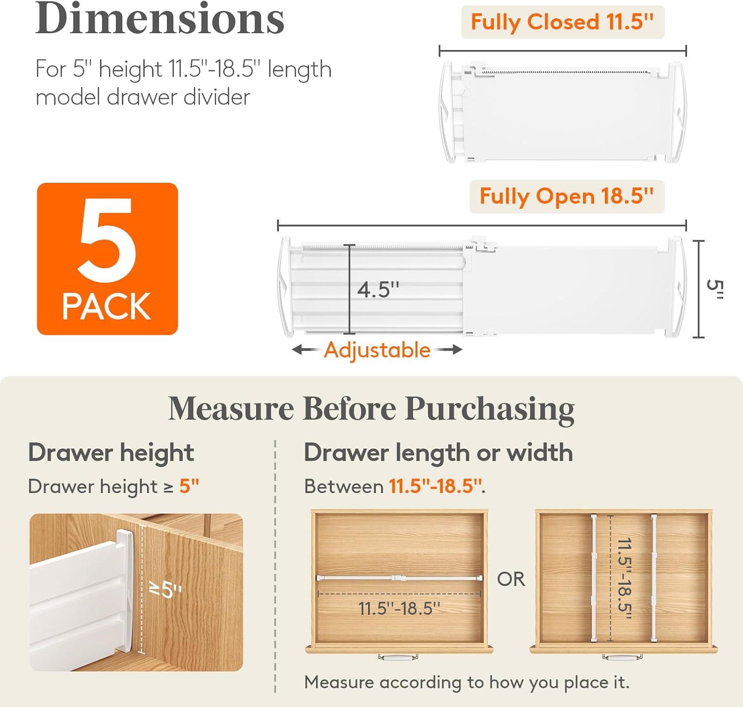 Lifewit 4 Pack Deep Drawer Dividers 8″ High, 13.8-22.5″ Adjustable Dresser Drawer Divider, Plastic Drawer Organizer for Clothes, Tall Drawers Separators for Dresser, Kitchen, Bedroom, Bathroom, Office(5)