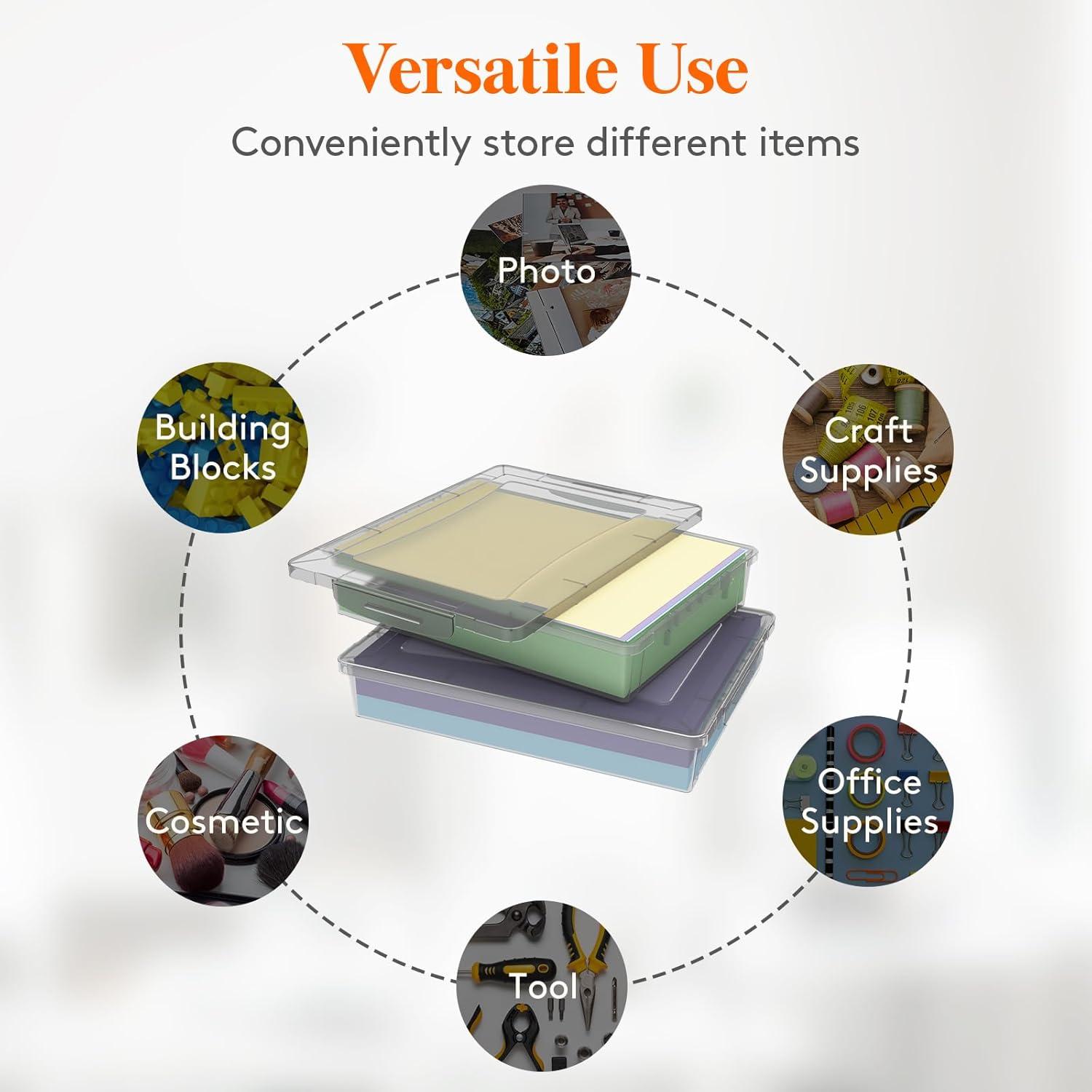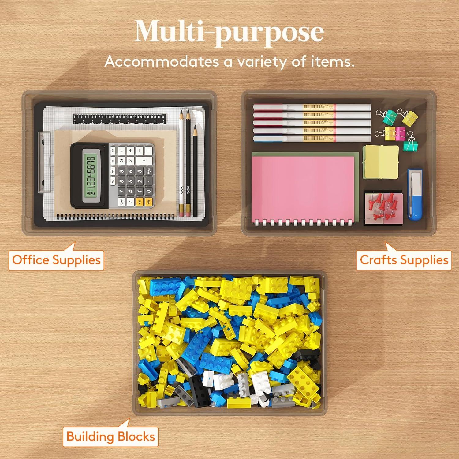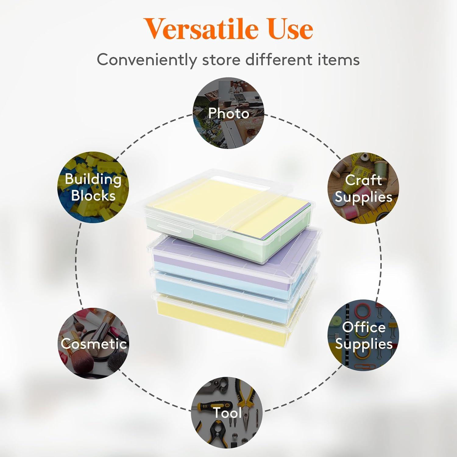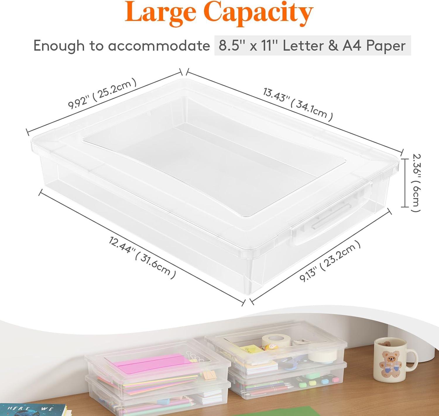 Lifewit 4 Pack Plastic Multi-Purpose Storage Box with Latching Lids, Clear A4, 8.5″ x 11″ Letter Size Paper Storage, Storage Containers for Board Game, Craft, Document, Magazine, Art Supplies(Clear)
