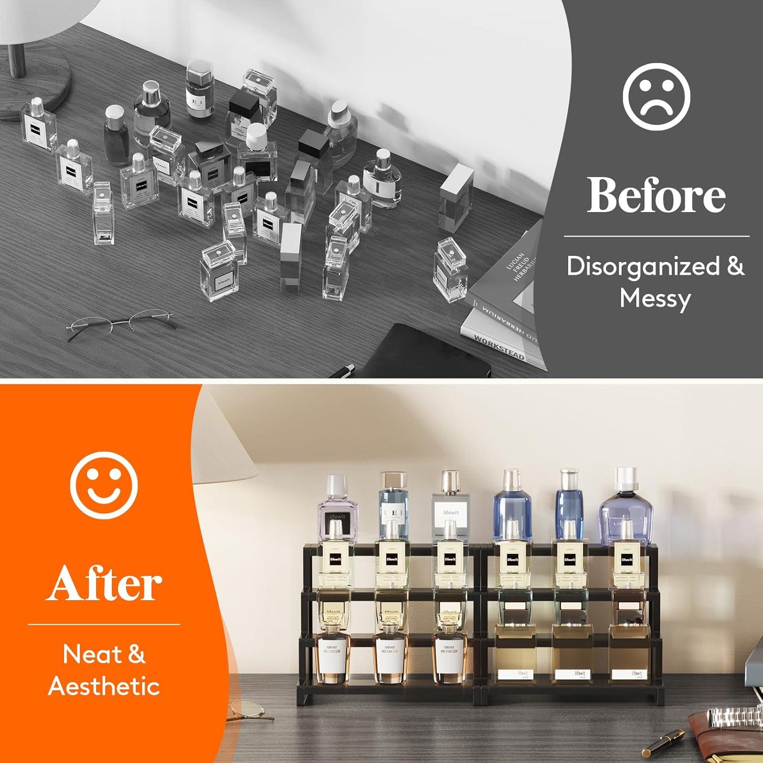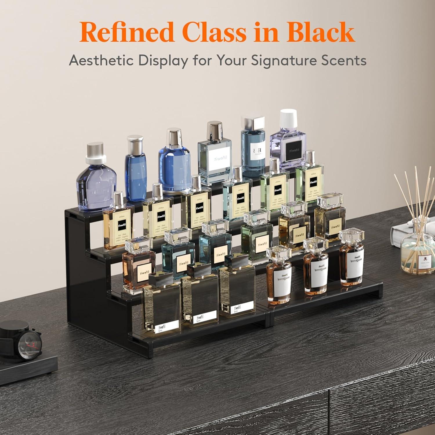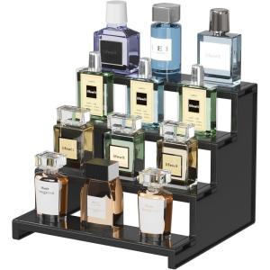 Lifewit 4 Tier Perfume Stand Organizer for Women, Plastic Display Riser, Tool-Free Assembly, Fragrance Makeup Cosmetics Shelf for Vanity Bedroom Bathroom Storage Organization, Clear, 9 Inch, 1 Pcs(Black)