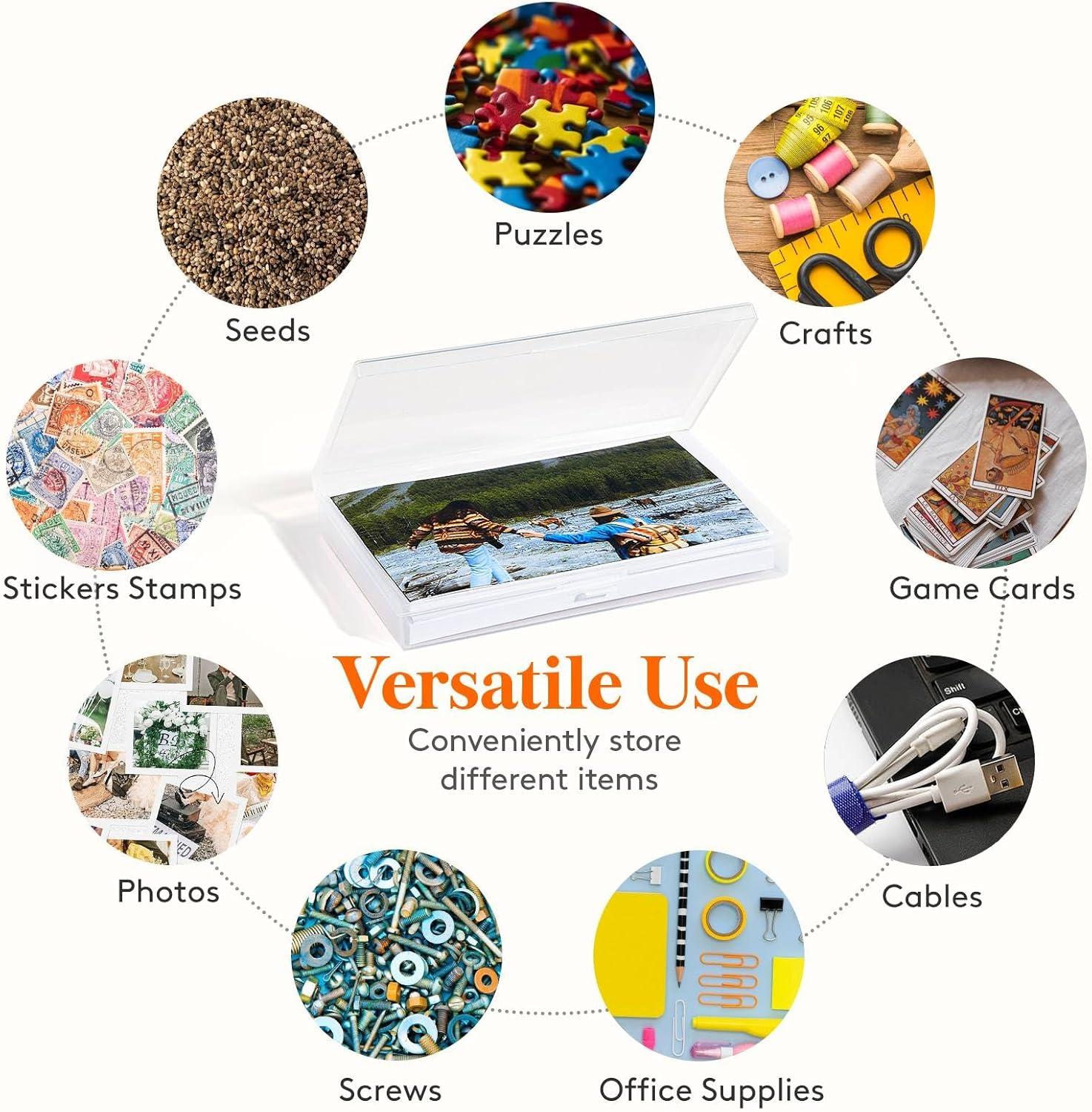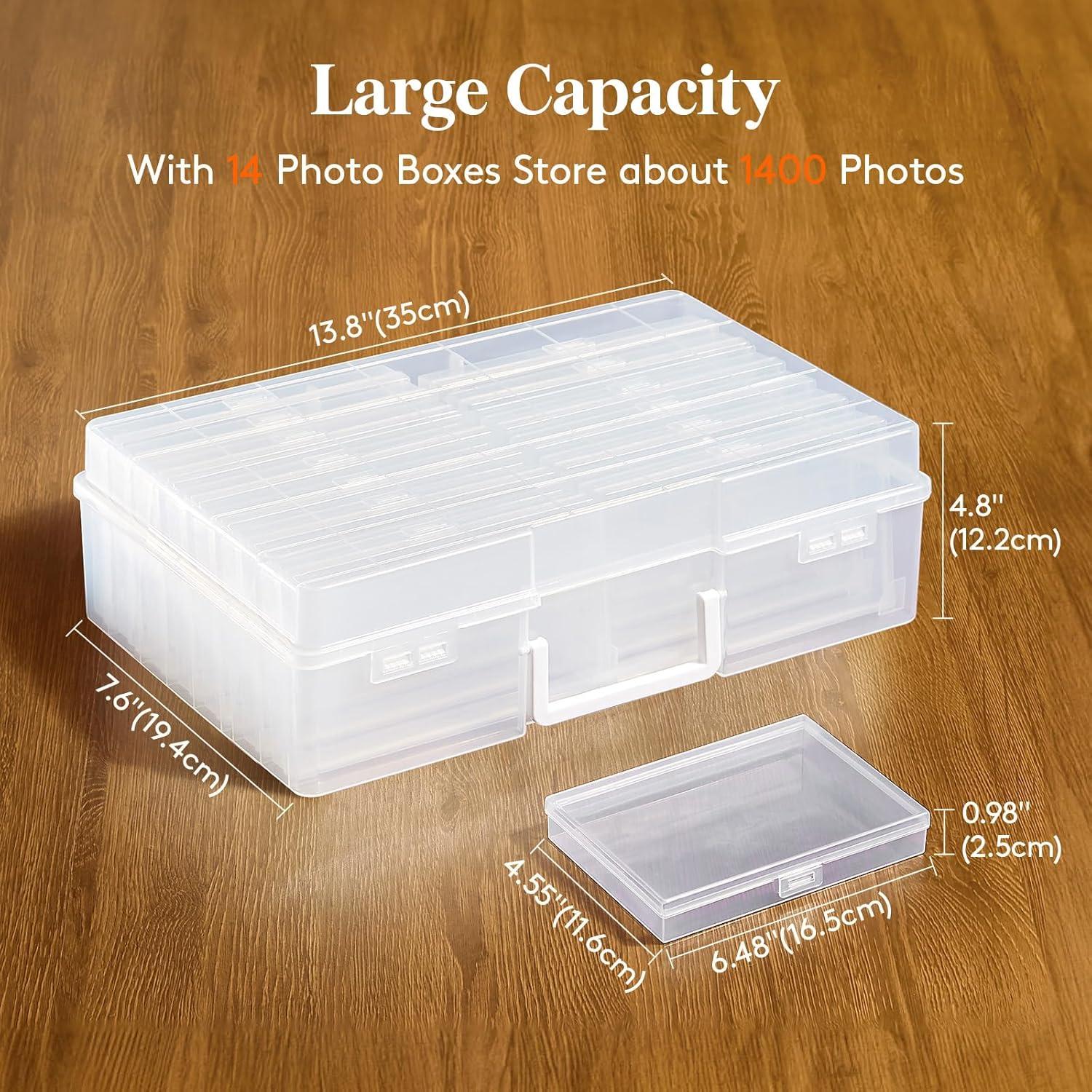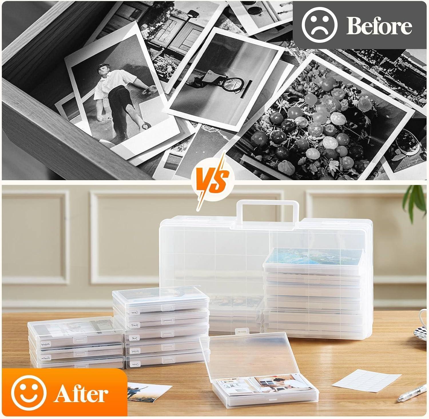 Lifewit 4×6 Photo Storage Box, 14 pcs Inner Photo Case with Lids, Clear Photo Organizers with 1 Sheet Label Sticker, Plastic Craft Storage Box for Seeds Sticker Cards Pictures Stamps Office Supplies(Clear)