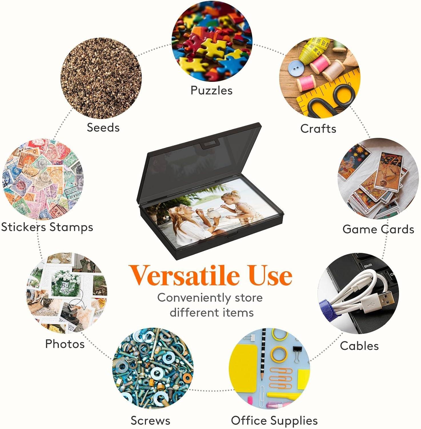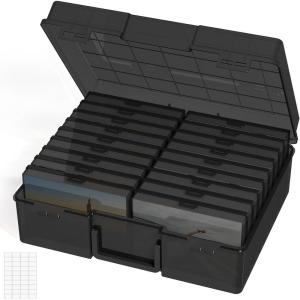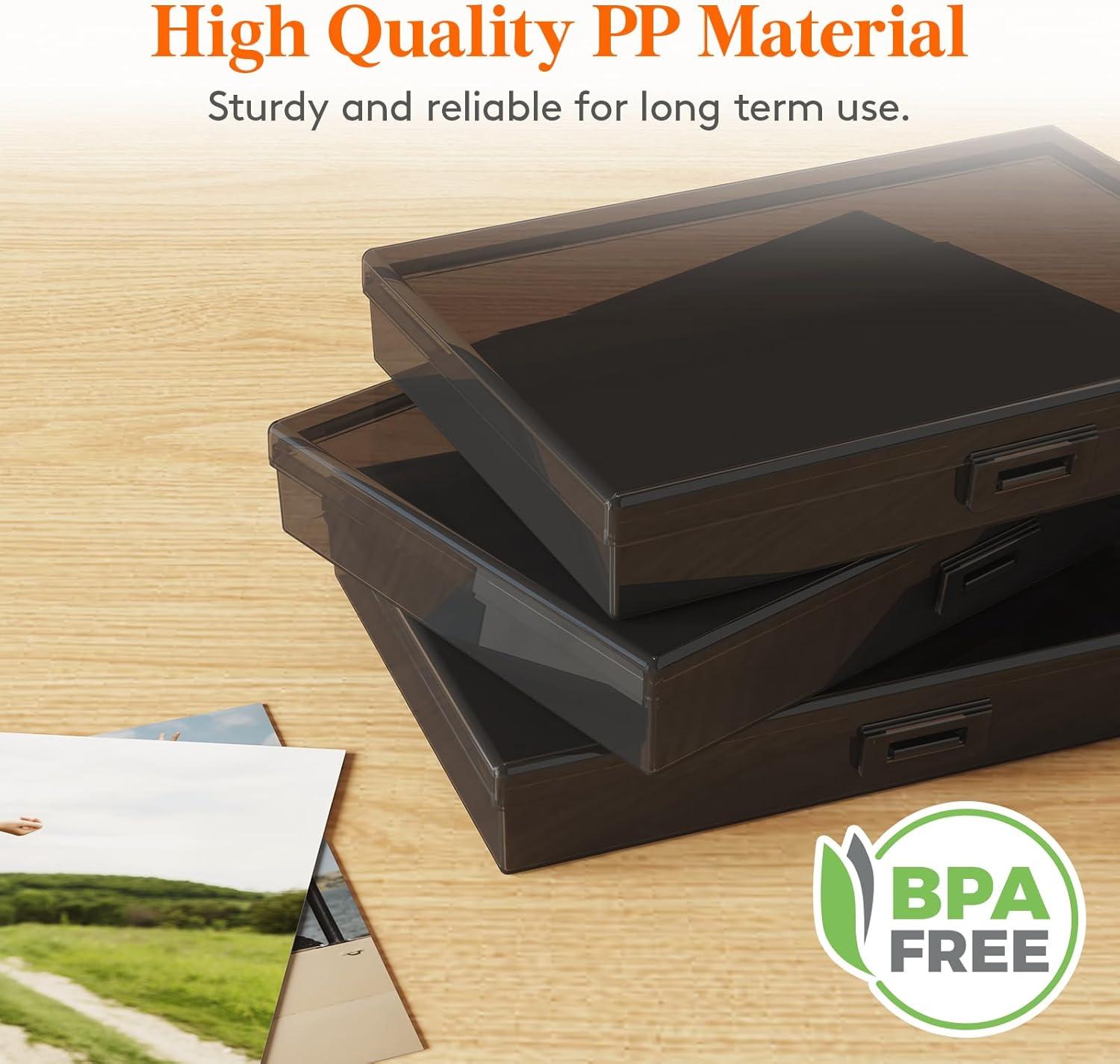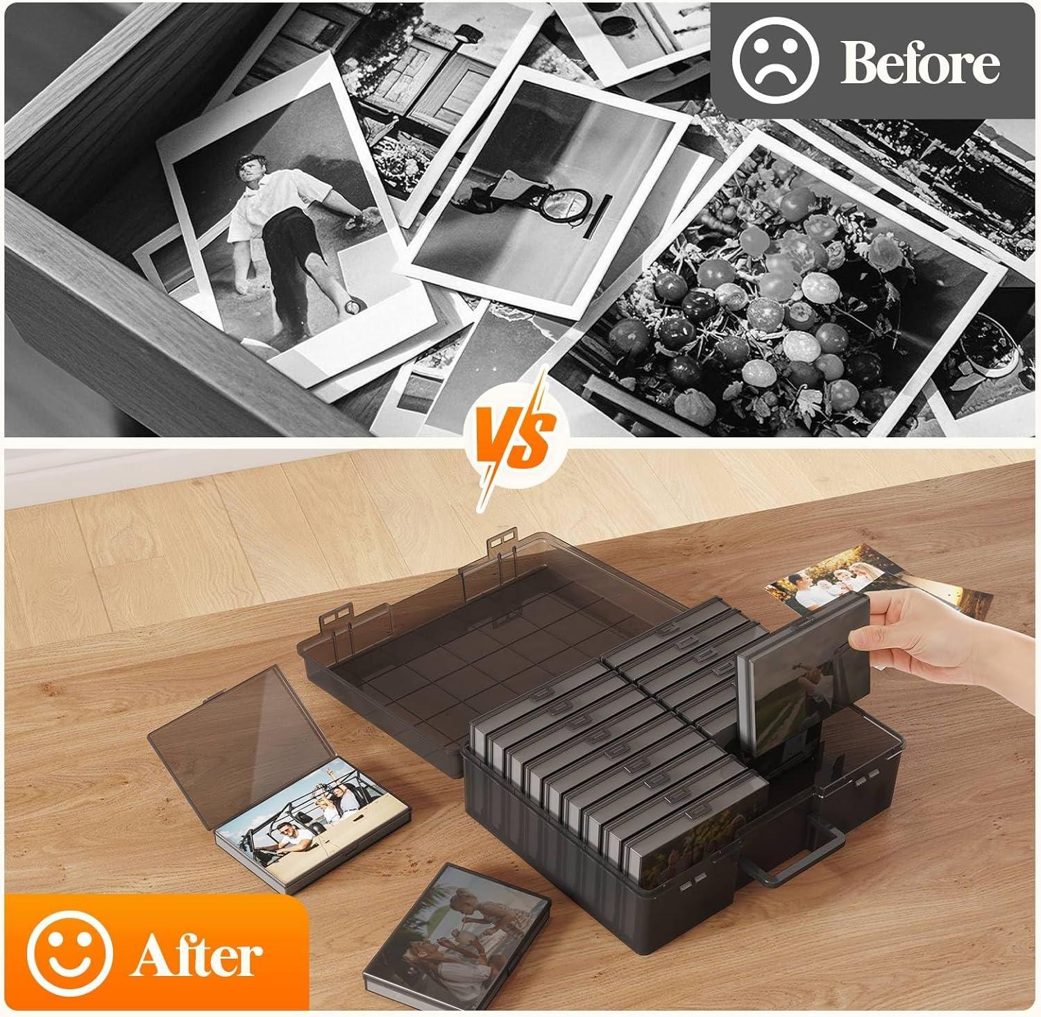 Lifewit 4×6 Photo Storage Box, 14 pcs Inner Photo Case with Lids, Clear Photo Organizers with 1 Sheet Label Sticker, Plastic Craft Storage Box for Seeds Sticker Cards Pictures Stamps Office Supplies(Black)
