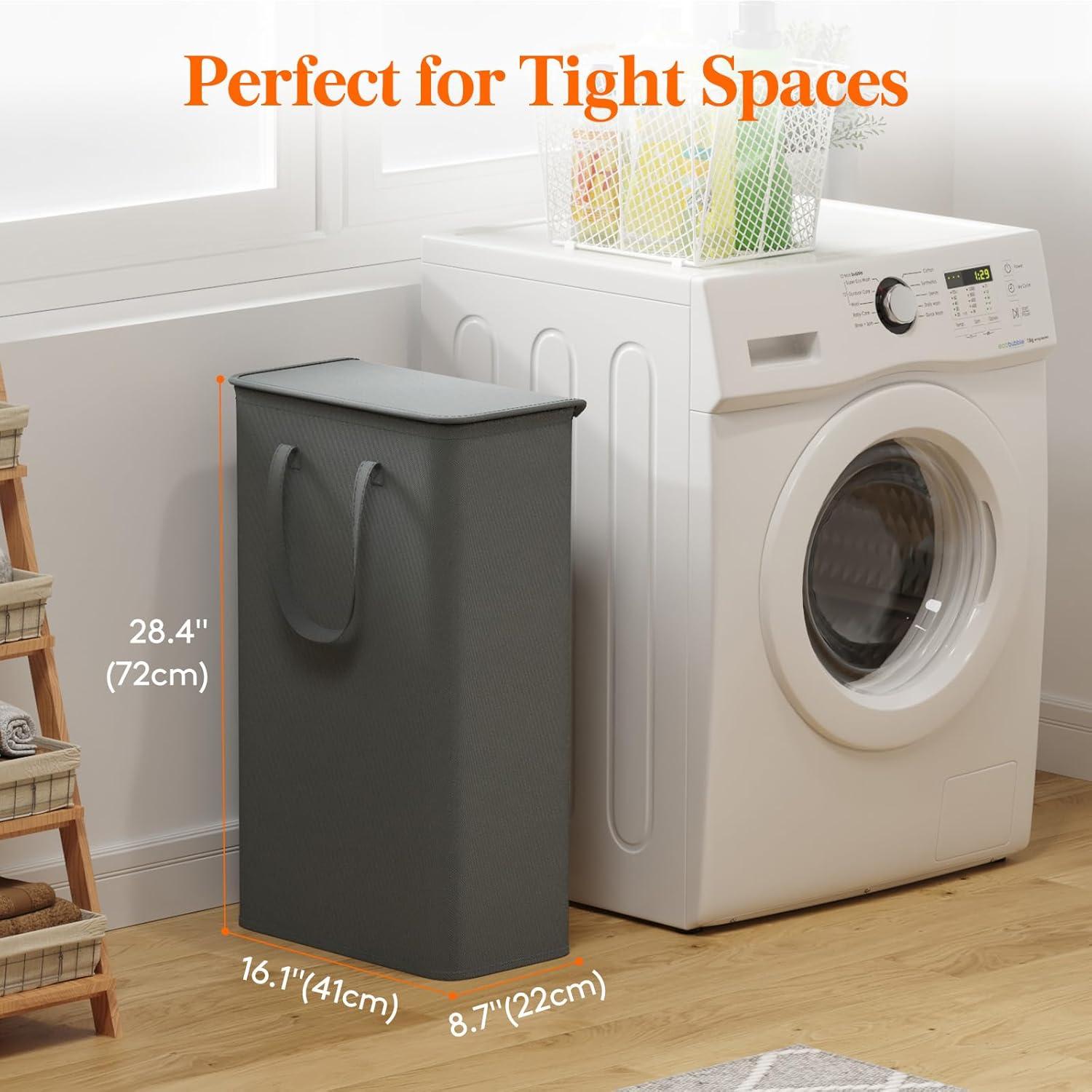 Lifewit 65L Slim Laundry Hamper with Lid, Narrow Laundry Basket with Removable Bag & Bamboo Handles, Fodable Thin Dirty Clothes Hamper for Laundry Collapsible Bin for Bathroom Bedroom Dorm, Dark Gray(Dark Gray)
