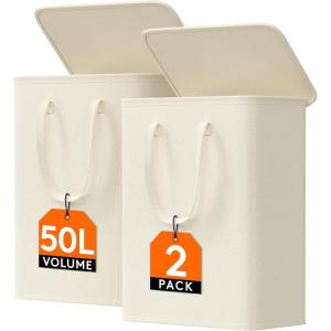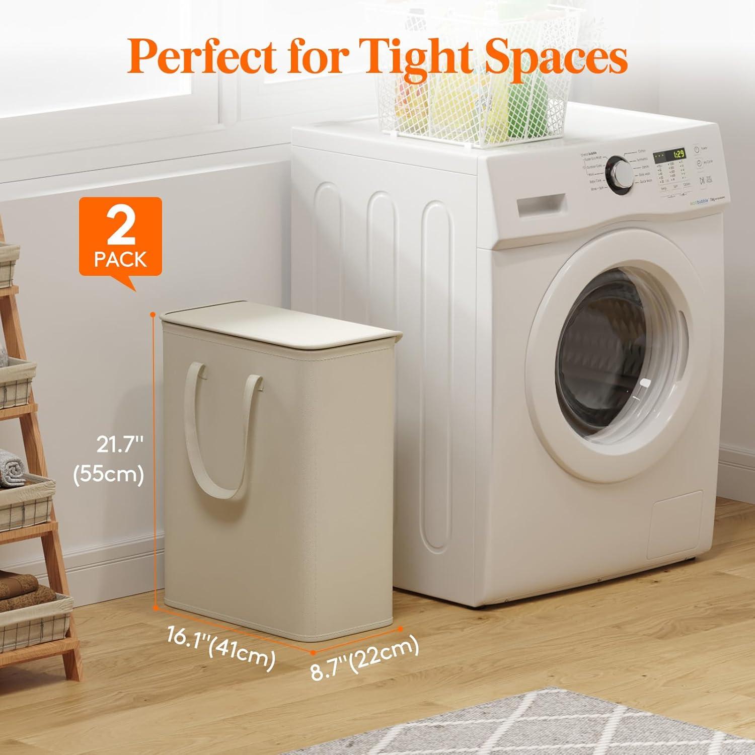 Lifewit 65L Slim Laundry Hamper, Small Laundry Basket with Lid, Dirty Narrow Collapsible Clothes Storage with Easy Carry Extended Handles, Tall Hampers for Bedroom Laundry Room, White, 2 Packs(White)