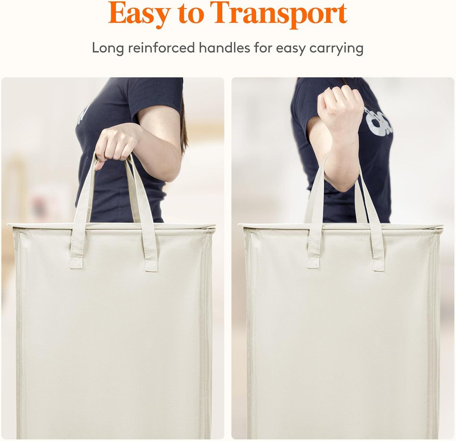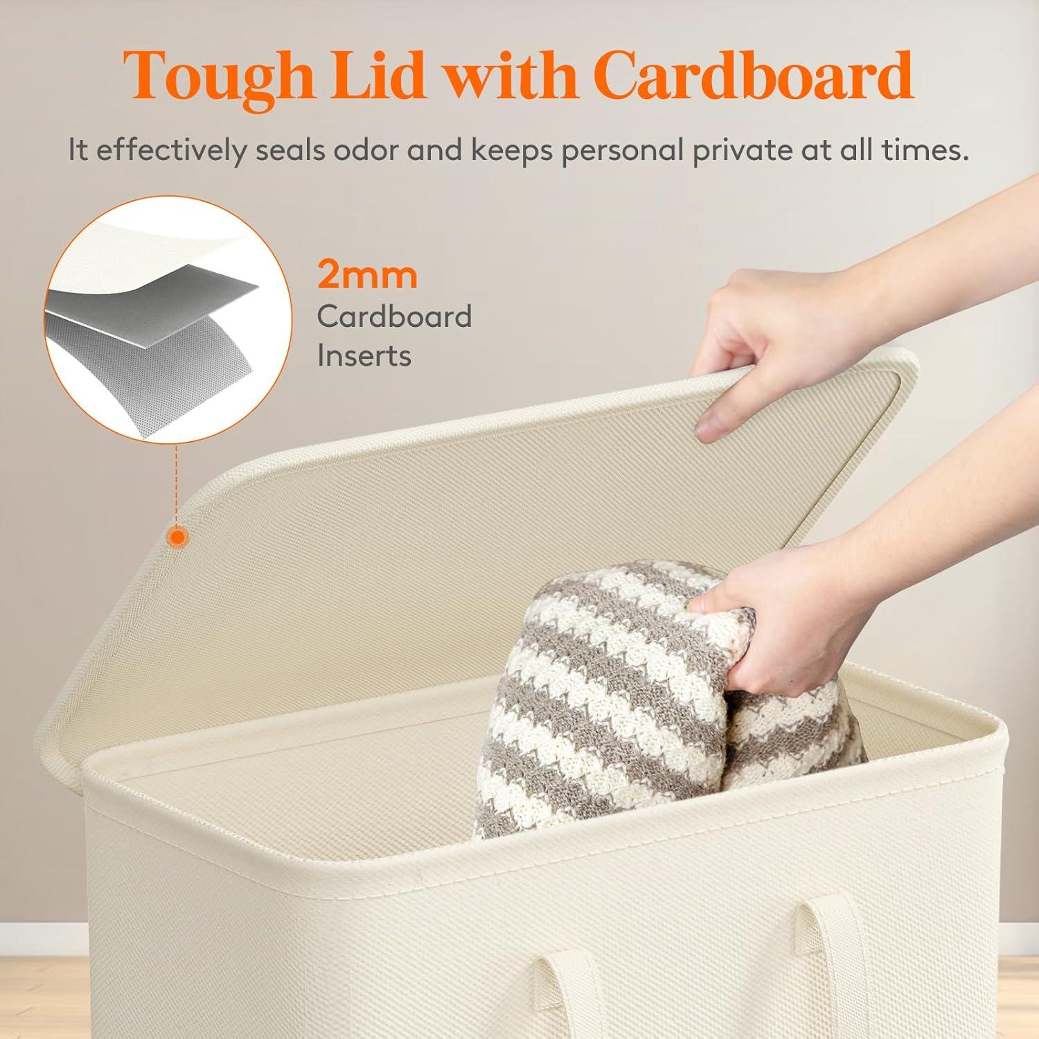 Lifewit 100L Laundry Basket with Lid, Clothes Hampers for Laundry with Bamboo Handles and A Removable Bag, Large Foldable Laundry Hamper for Bedroom, Bathroom, Dorm, Laundry Room, Beige(White)
