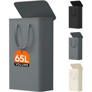 Lifewit 65L Slim Laundry Hamper, Small Laundry Basket with Lid, Dirty Narrow Collapsible Clothes Storage with Easy Carry Extended Handles, Tall Hampers for Bedroom Laundry Room, White, 1 Pack(Gray)