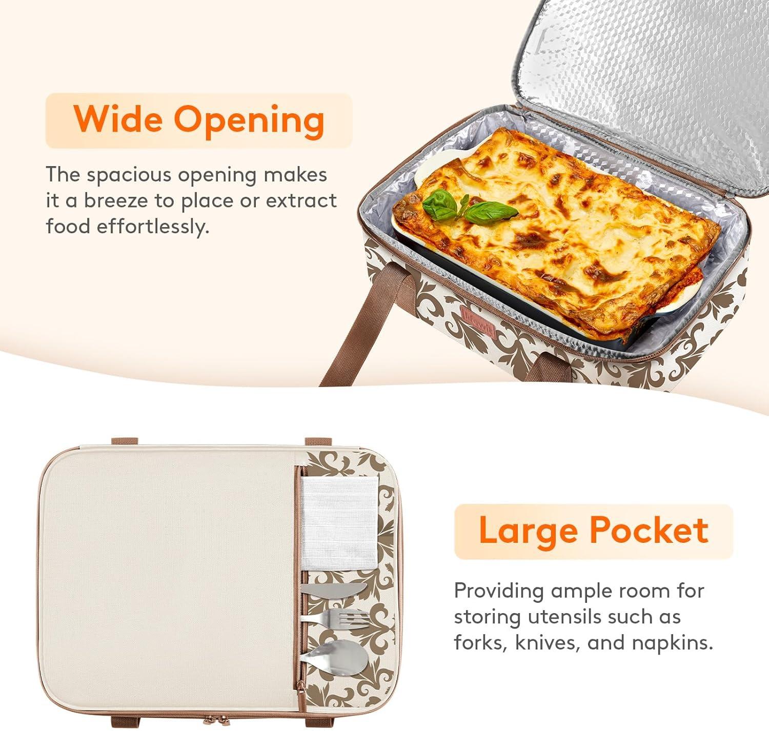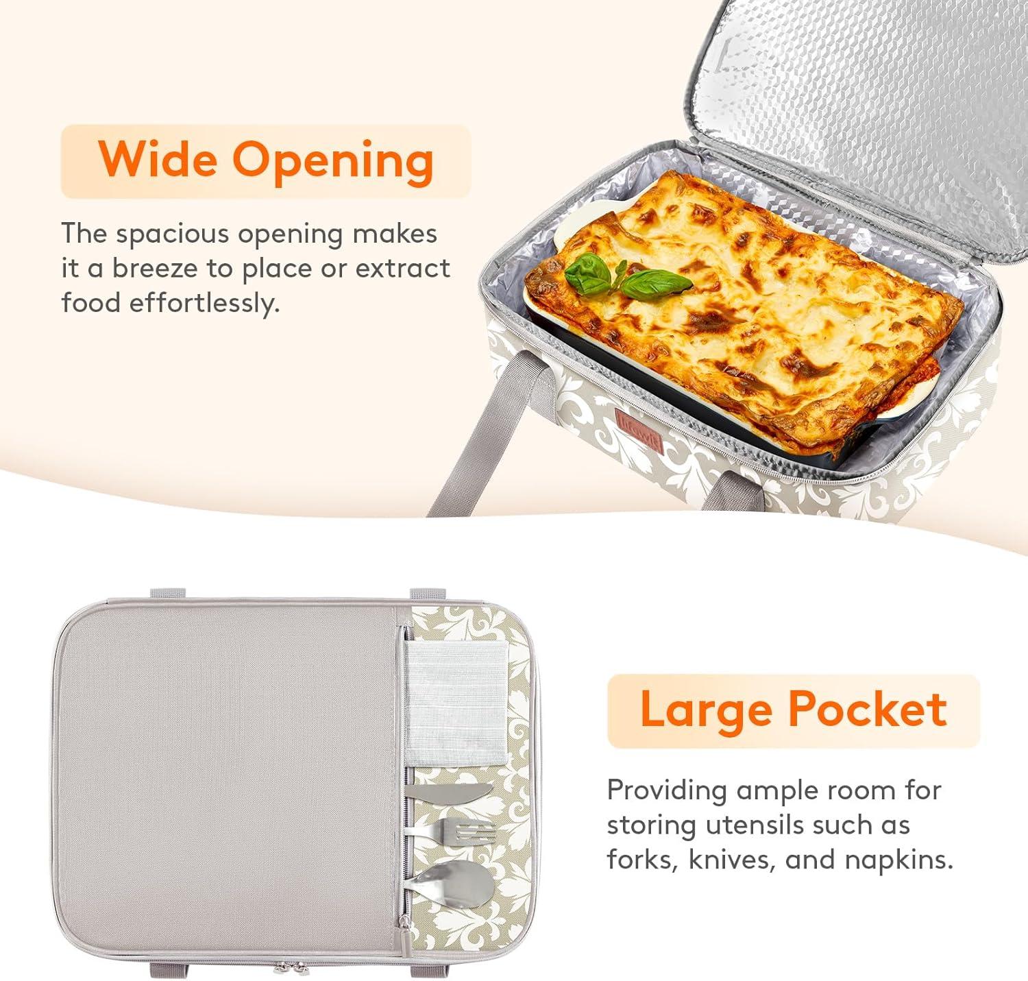 Lifewit Casserole Carrier for Hot or Cold Food, Insulated Casserole Baking Dish Bag Food Carrier, Lasagna Holder for Potluck/Parties/Picnic/Cookouts, Fits 9″x13″ Baking Dish, Grey(Beige)