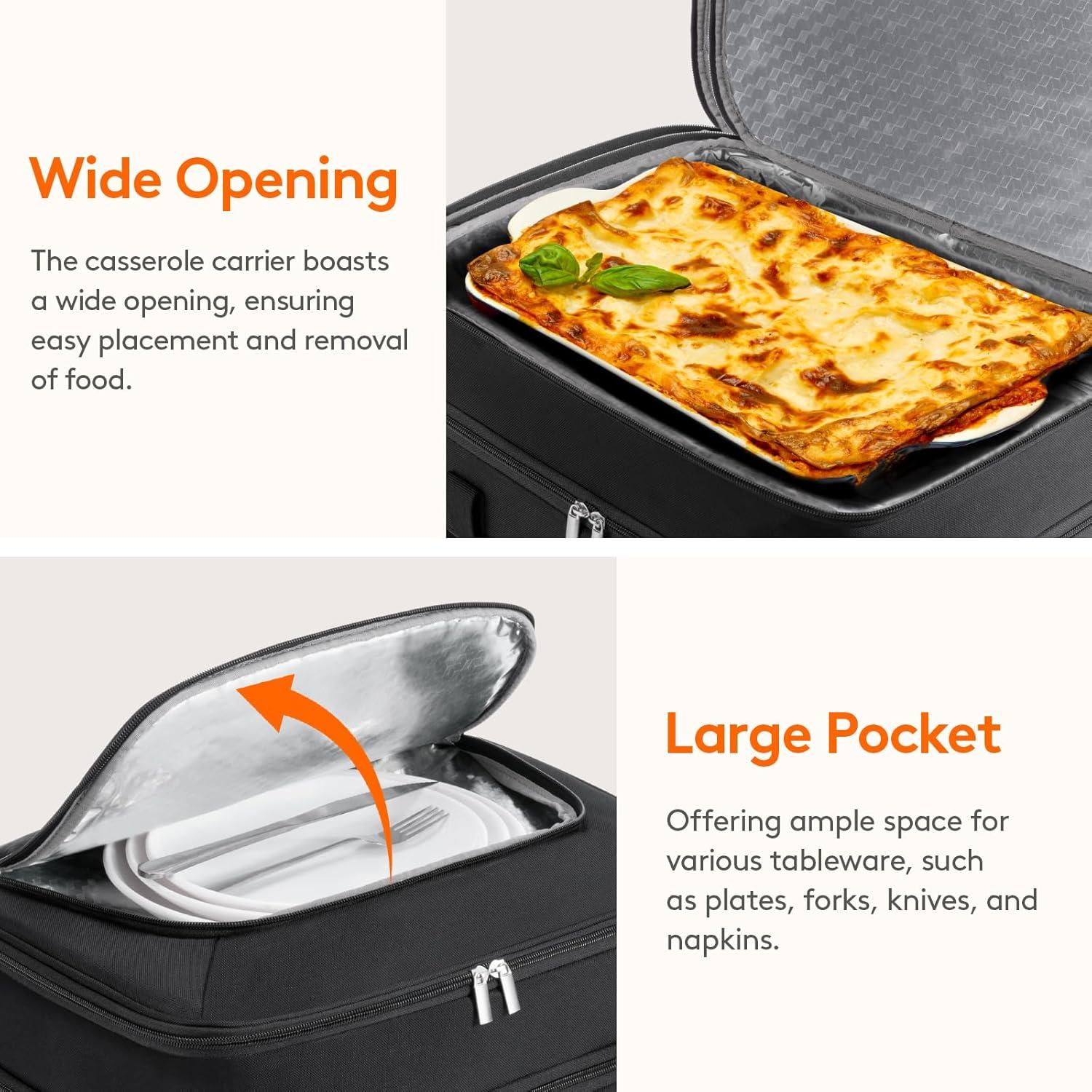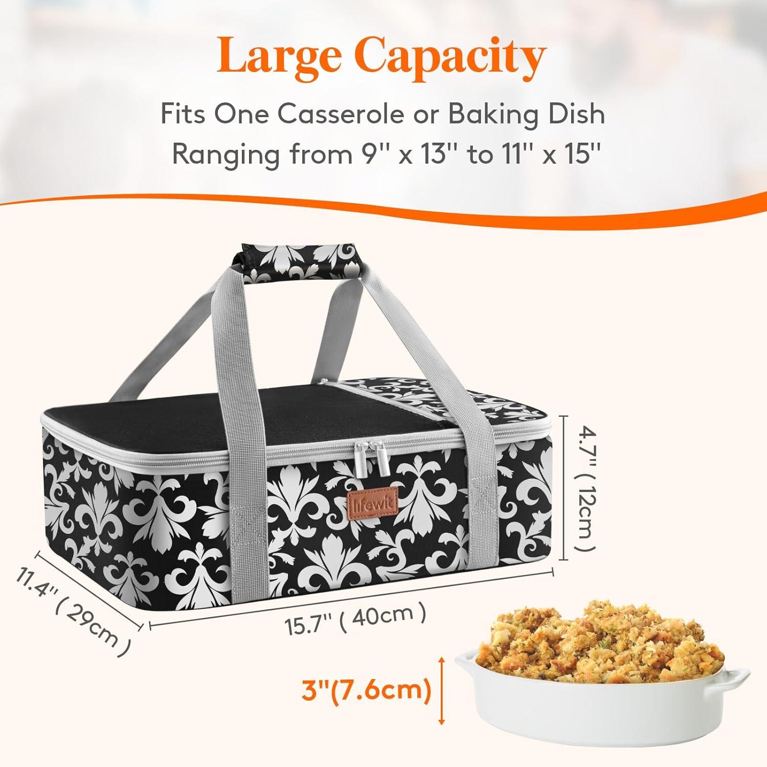 Lifewit Casserole Carrier for Hot or Cold Food, Insulated Casserole Baking Dish Bag Food Carrier, Lasagna Holder for Potluck/Parties/Picnic/Cookouts, Fits 9″x13″ Baking Dish, Grey(Black)