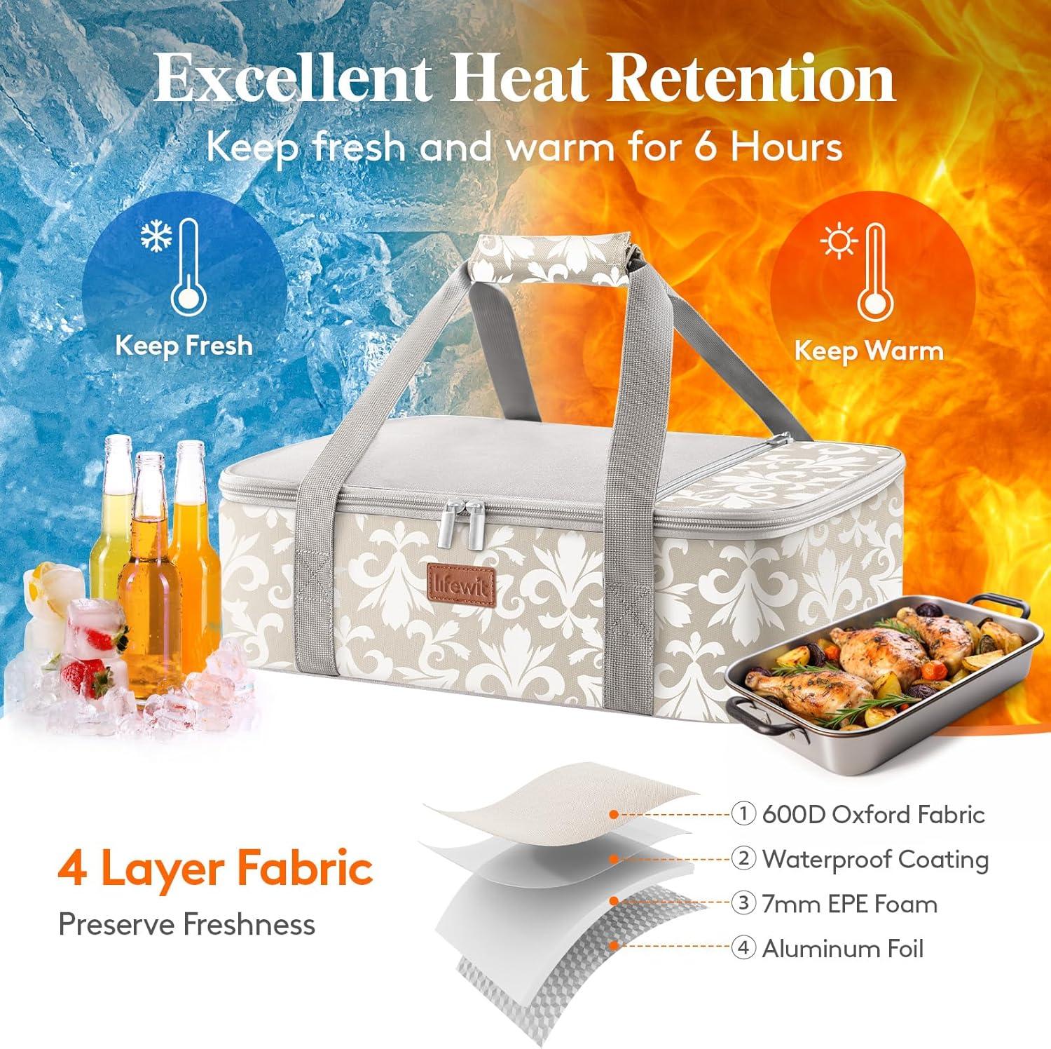 Lifewit Casserole Carrier for Hot or Cold Food, Insulated Casserole Baking Dish Bag Food Carrier, Lasagna Holder for Potluck/Parties/Picnic/Cookouts, Fits 9″x13″ Baking Dish, Grey(Gray)