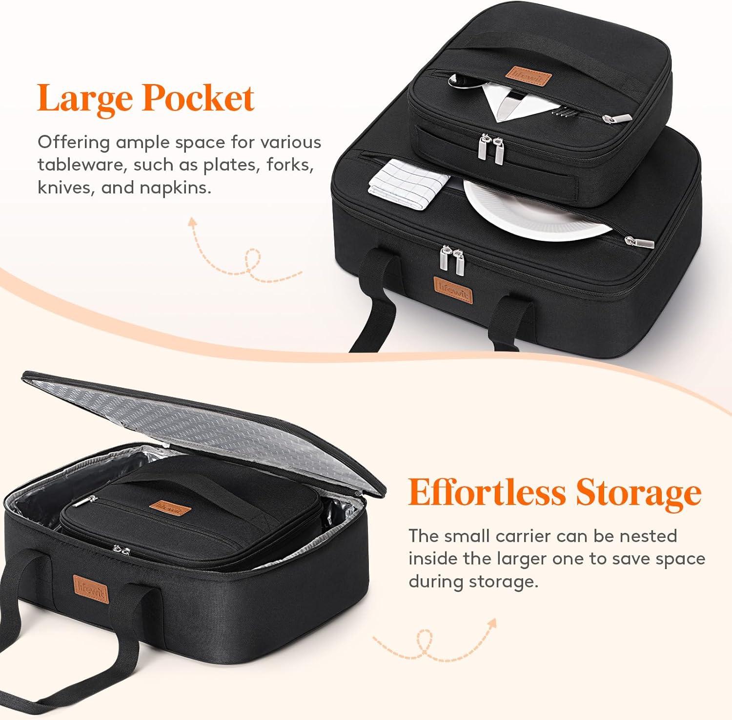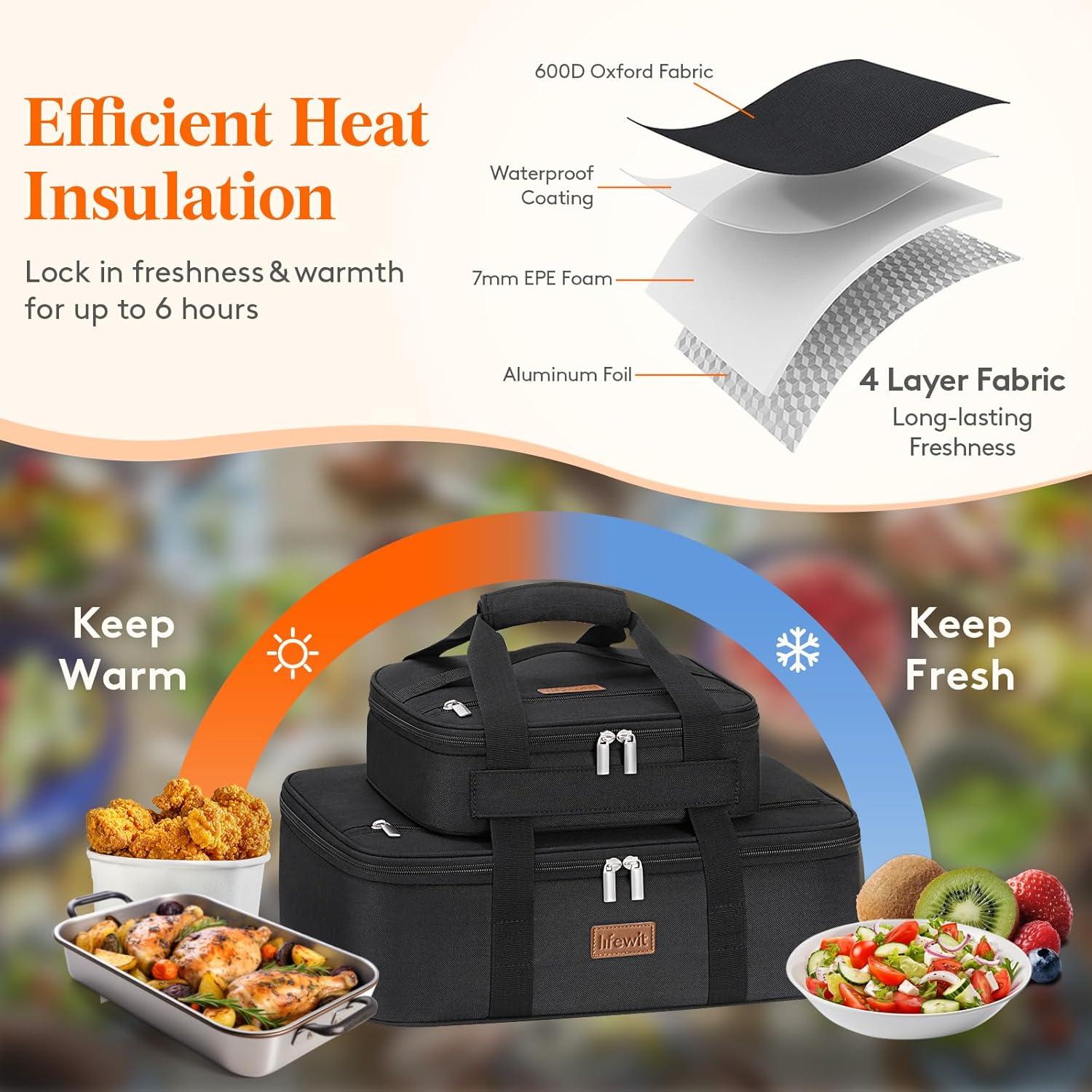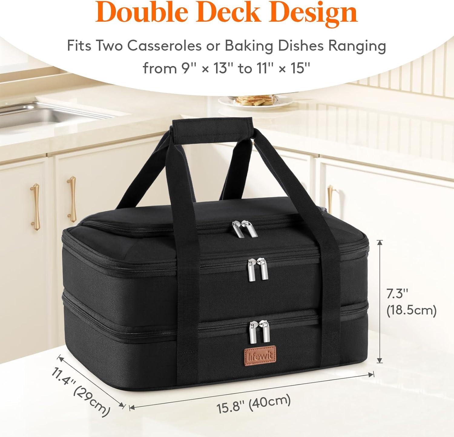 Lifewit Duo Insulated Casserole Carrier for Hot or Cold Food, Lasagna Holder 2 Compartments, Thermal Lunch Tote for Potluck Parties Cookouts, Fits 9″x13″ Casserole Dish, Gray(Black)