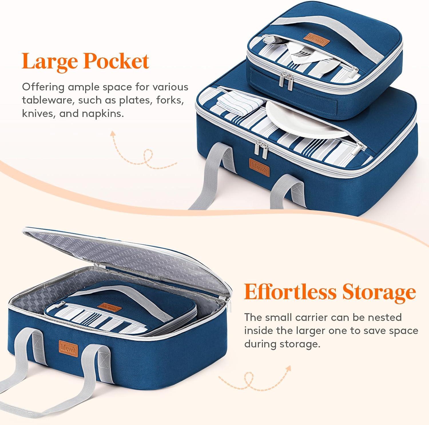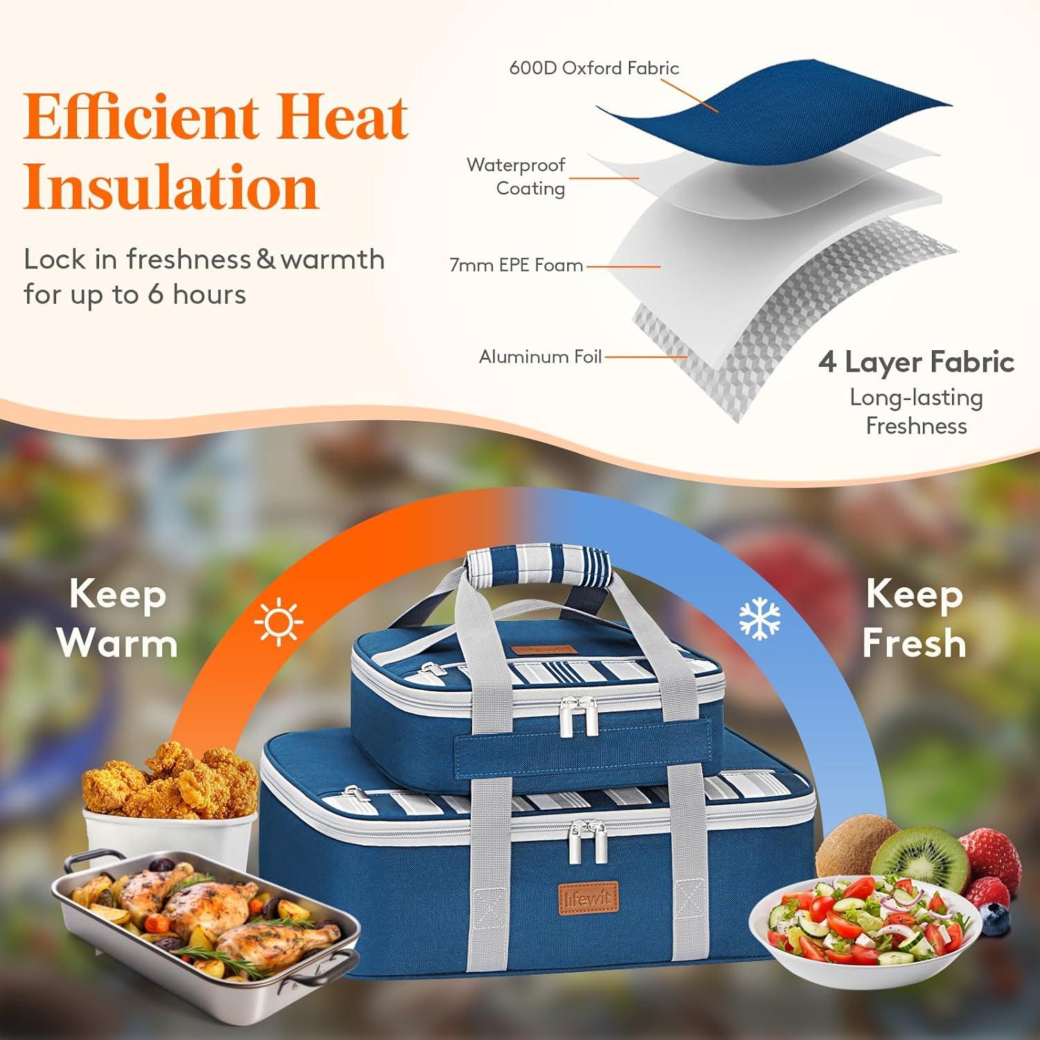 Lifewit Duo Insulated Casserole Carrier for Hot or Cold Food, Lasagna Holder 2 Compartments, Thermal Lunch Tote for Potluck Parties Cookouts, Fits 9″x13″ Casserole Dish, Gray(Blue)