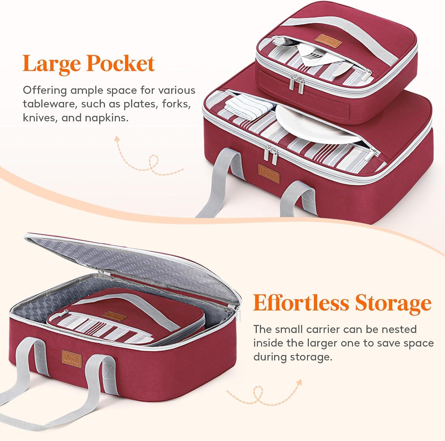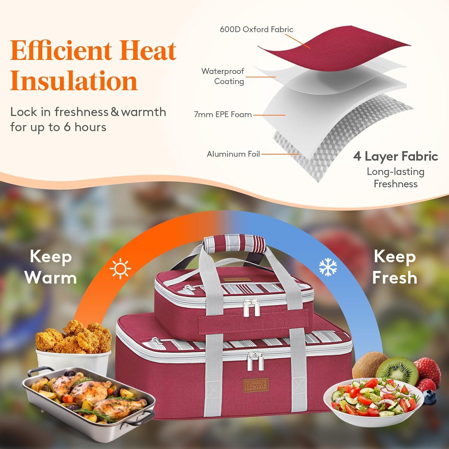 Lifewit Duo Insulated Casserole Carrier for Hot or Cold Food, Lasagna Holder 2 Compartments, Thermal Lunch Tote for Potluck Parties Cookouts, Fits 9″x13″ Casserole Dish, Gray(Red)