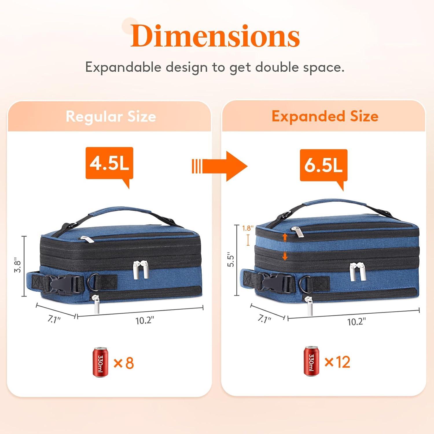 Lifewit Expandable Lunch Box for Men, Insulated Lunch Bag, Portable Cooler Bag with Shoulder Straps and 2 Ice Packs for Men Women Adult for Work College Travel, 6.5L 12 Cans Black(Blue)