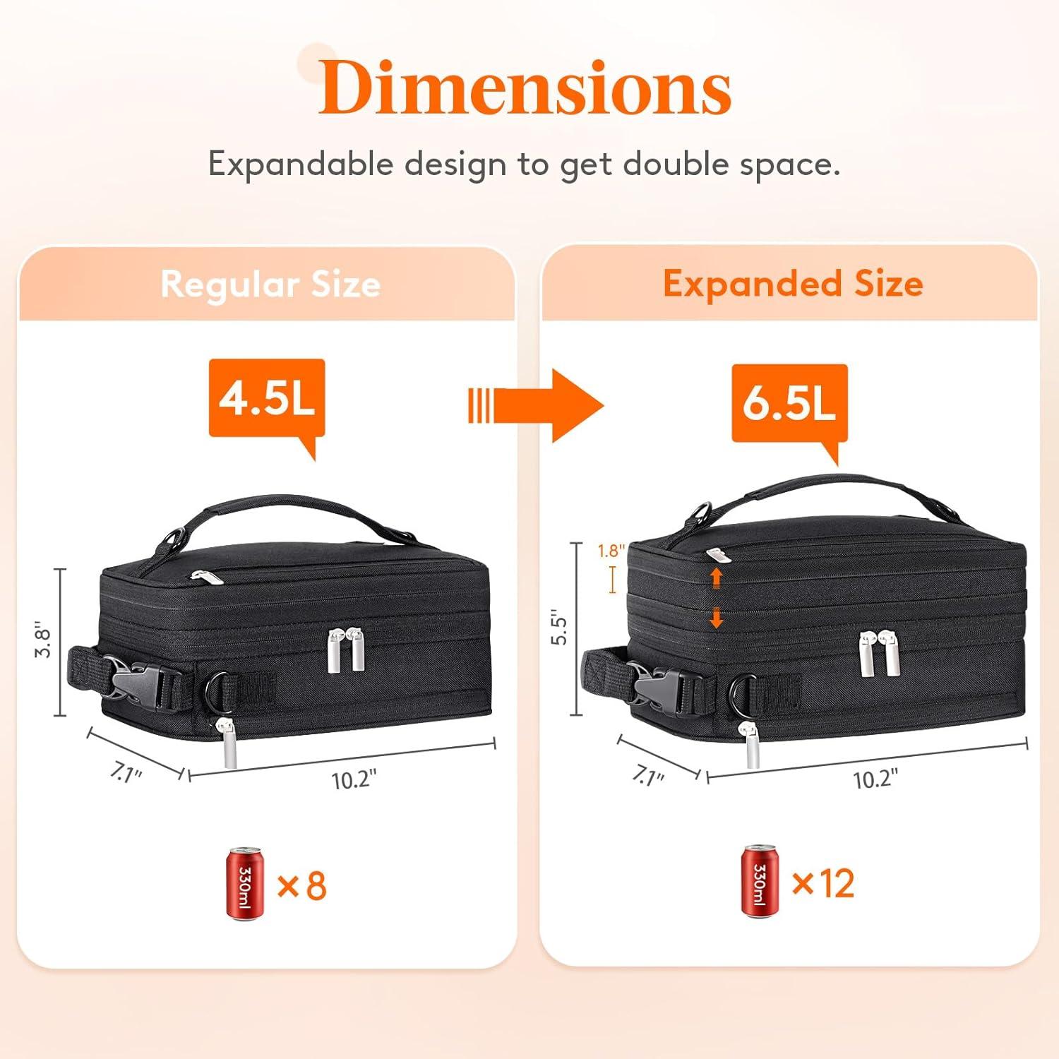 Lifewit Expandable Lunch Box for Men, Insulated Lunch Bag, Portable Cooler Bag with Shoulder Straps and 2 Ice Packs for Men Women Adult for Work College Travel, 6.5L 12 Cans Black(Back)