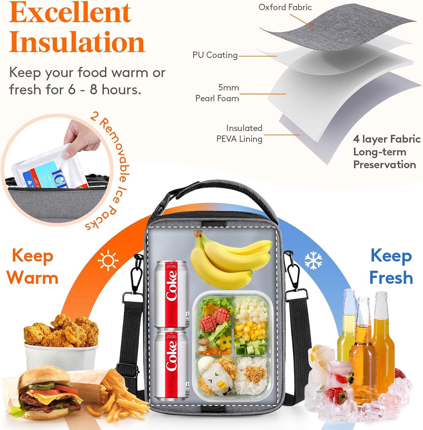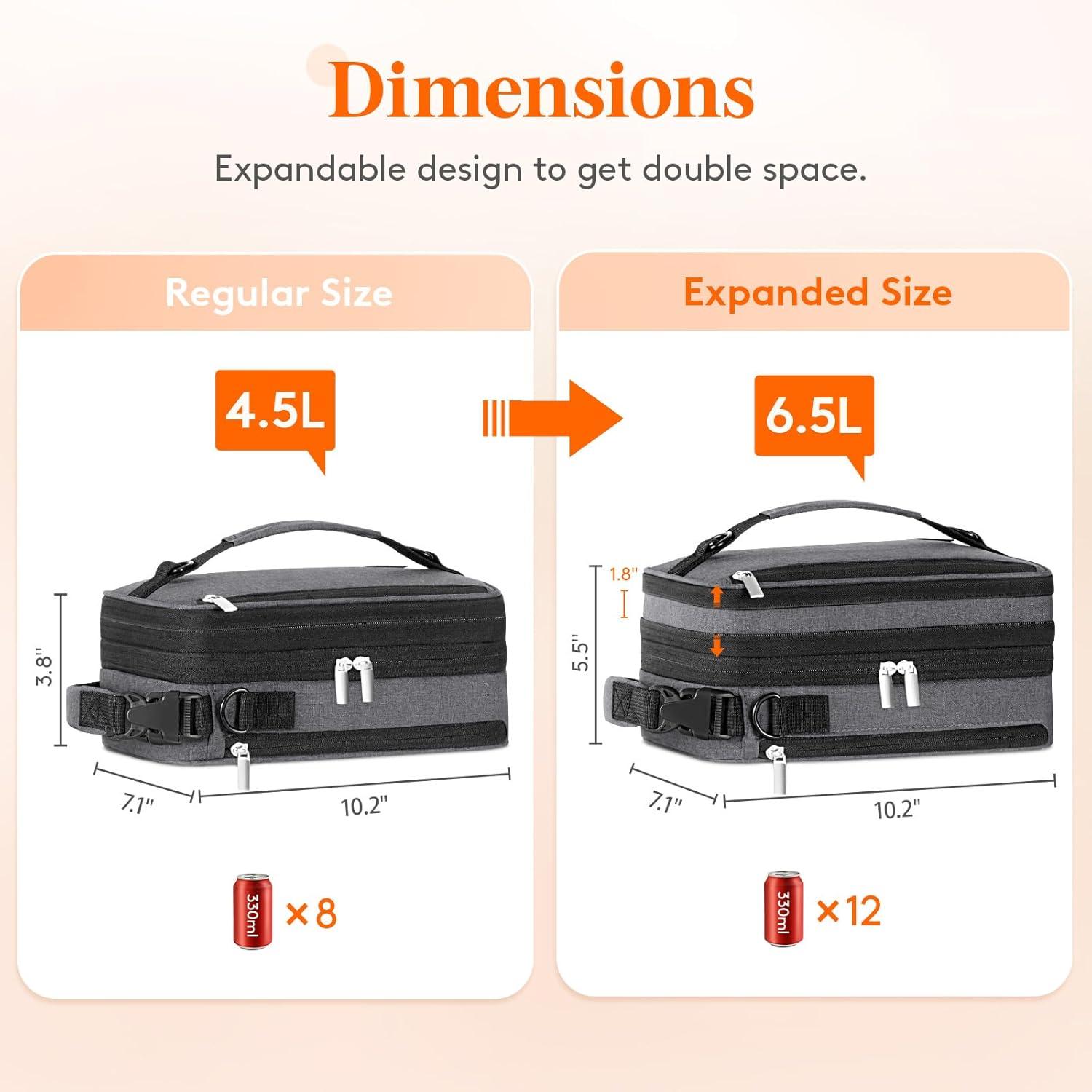 Lifewit Expandable Lunch Box for Men, Insulated Lunch Bag, Portable Cooler Bag with Shoulder Straps and 2 Ice Packs for Men Women Adult for Work College Travel, 6.5L 12 Cans Black(Gray)