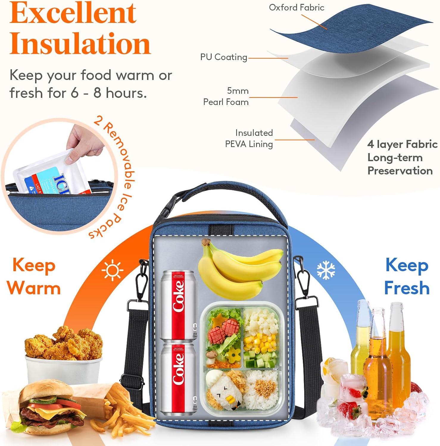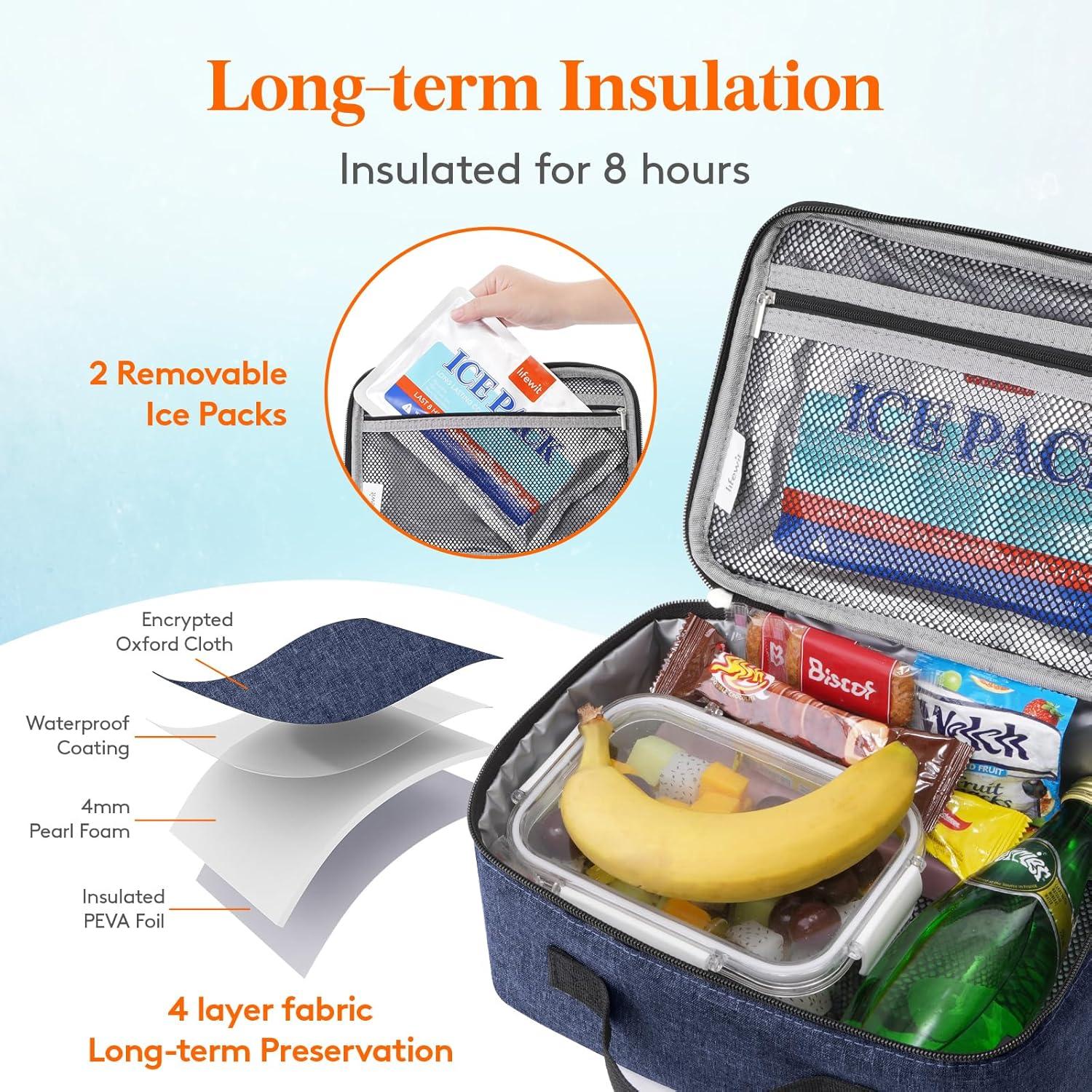 Lifewit Freezable Lunch Box, Insulated Reusable Lunch Bag with 2 Ice Packs, Mini Cooler Snack Bag for Bento Box for Salad, Sandwich, Snacks fo Men Women for Work, Black 5L(Dark Blue)