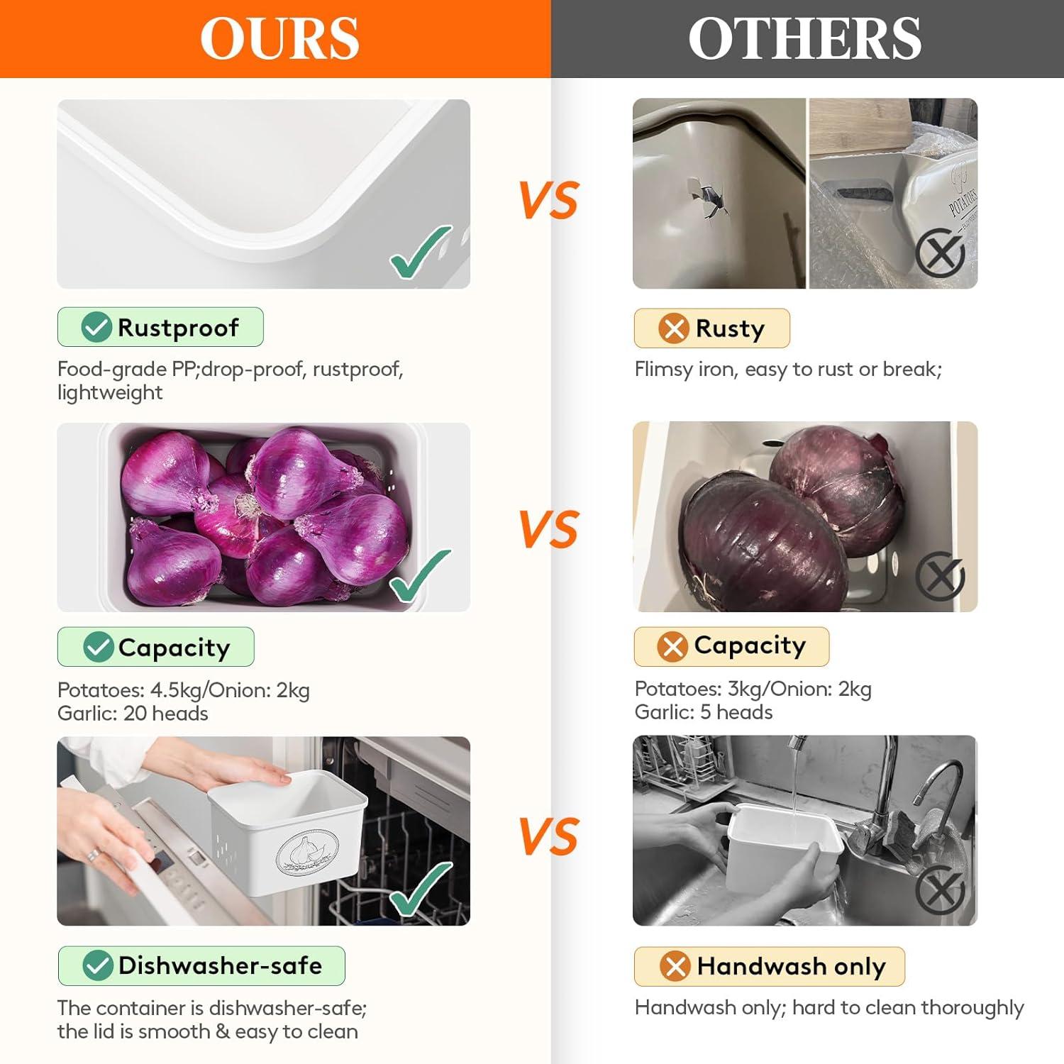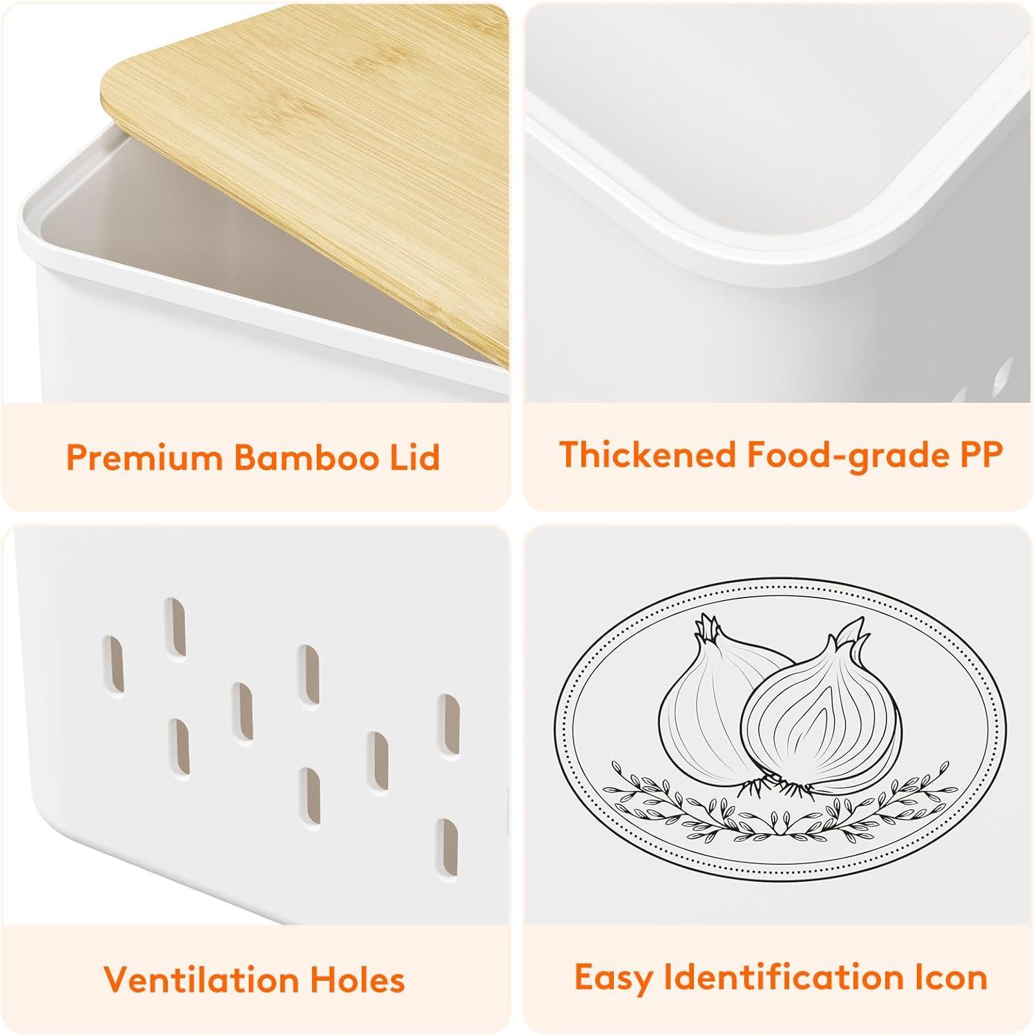 Lifewit Potato Onion and Garlic Storage Bin, Stackable Vegetable Storage Tins with Aerating Holes and Lid, Plastic Canister Keeper for Pantry Kitchen Countertop, Set of 3, 10L, White(White)