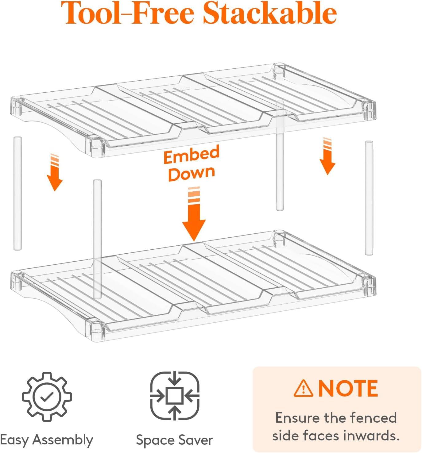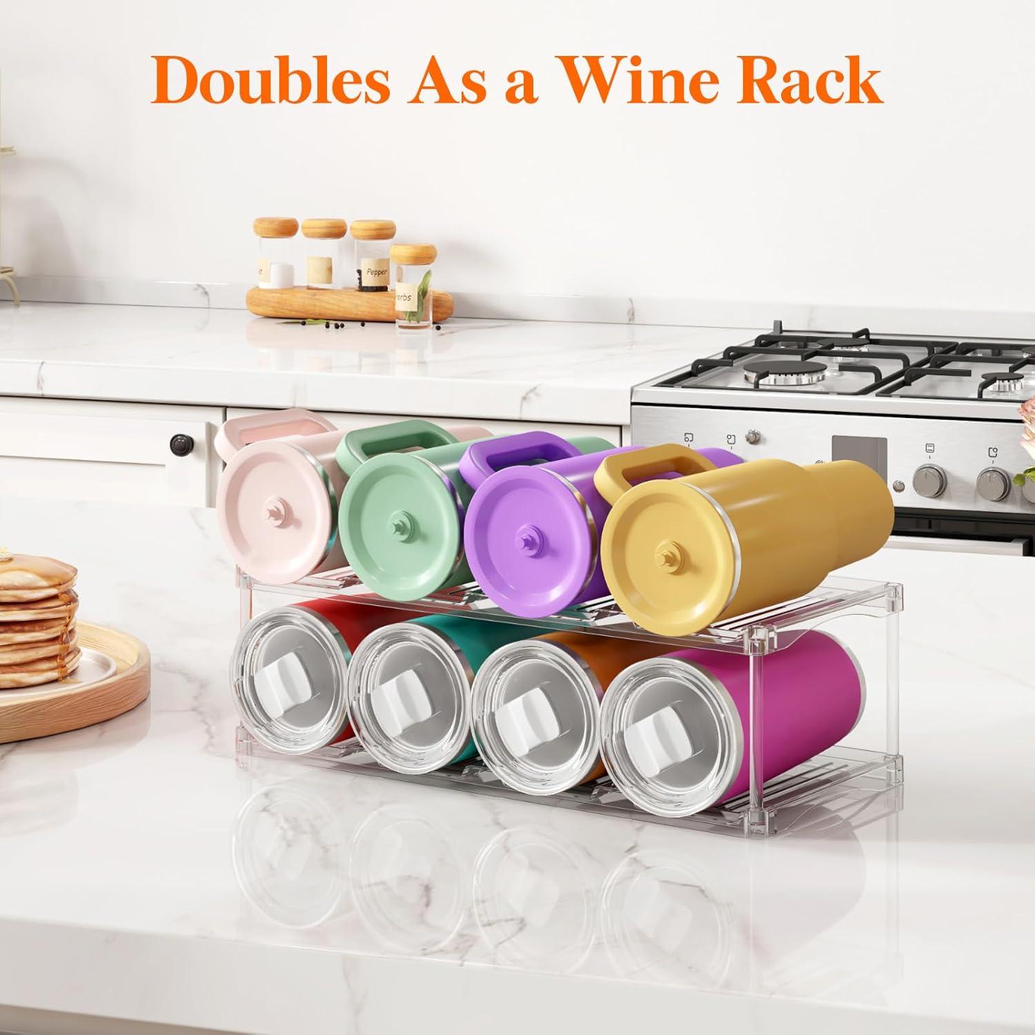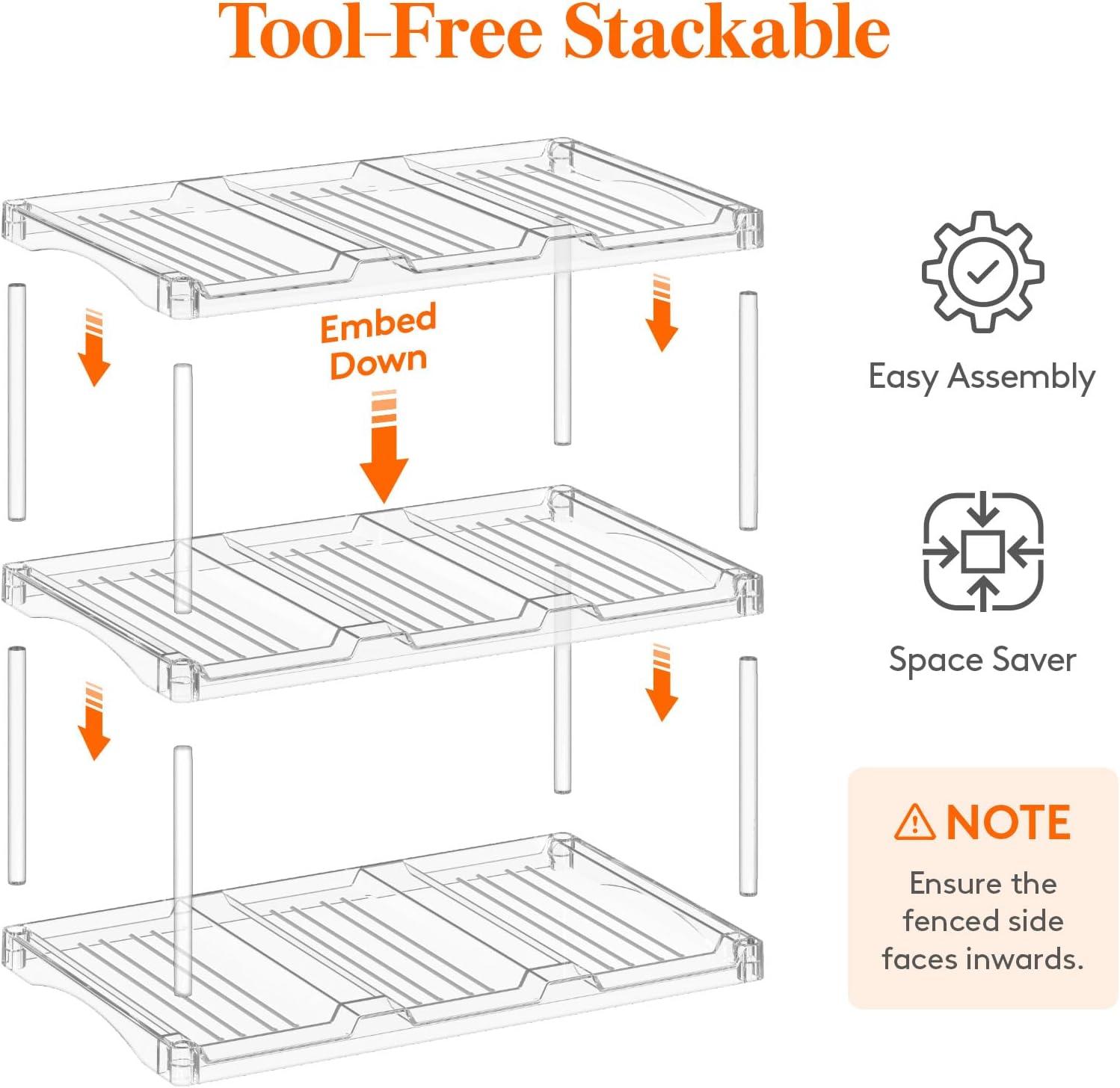 Lifewit Stackable Bottle Storage Organizer, Freestanding Wine Bottle Holder for Cabinet, Plastic Large Compartment Wine Rack for Fridge Cellar Kitchen Pantry Storage, 3Tier Hold 9(2 Tier-8 Bottle)