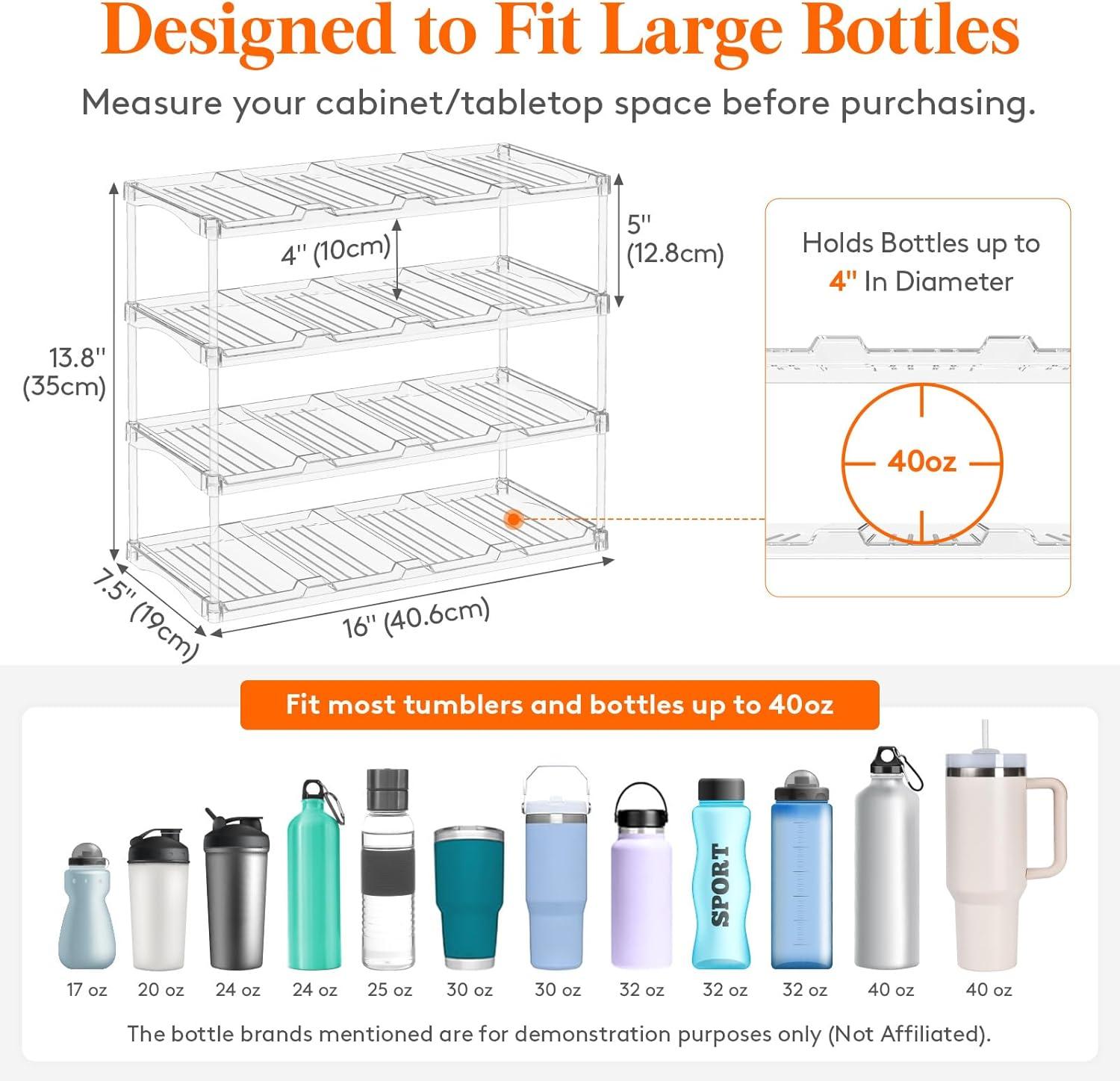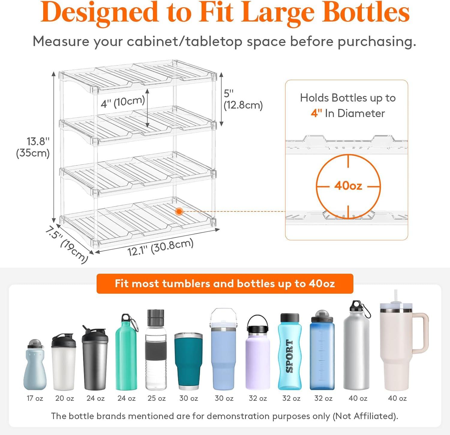 Lifewit Stackable Bottle Storage Organizer, Freestanding Wine Bottle Holder for Cabinet, Plastic Large Compartment Wine Rack for Fridge Cellar Kitchen Pantry Storage, 3Tier Hold 9(4 Tier-16 Bottle)