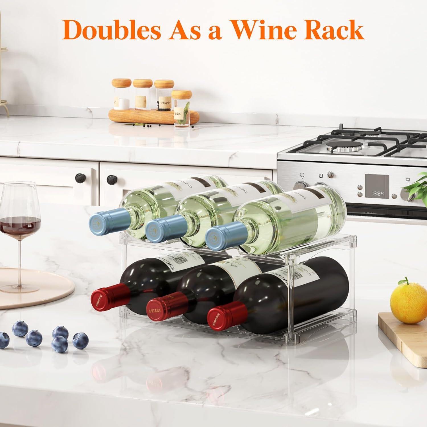 Lifewit Stackable Bottle Storage Organizer, Freestanding Wine Bottle Holder for Cabinet, Plastic Large Compartment Wine Rack for Fridge Cellar Kitchen Pantry Storage, 3Tier Hold 9(2 Tier-6 Bottle)