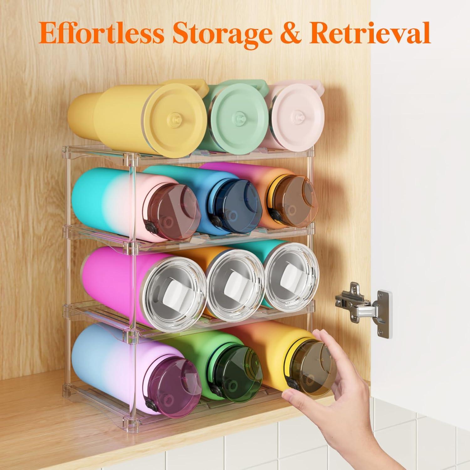 Lifewit Stackable Bottle Storage Organizer, Freestanding Wine Bottle Holder for Cabinet, Plastic Large Compartment Wine Rack for Fridge Cellar Kitchen Pantry Storage, 3Tier Hold 9(4 Tier-12 Bottle)