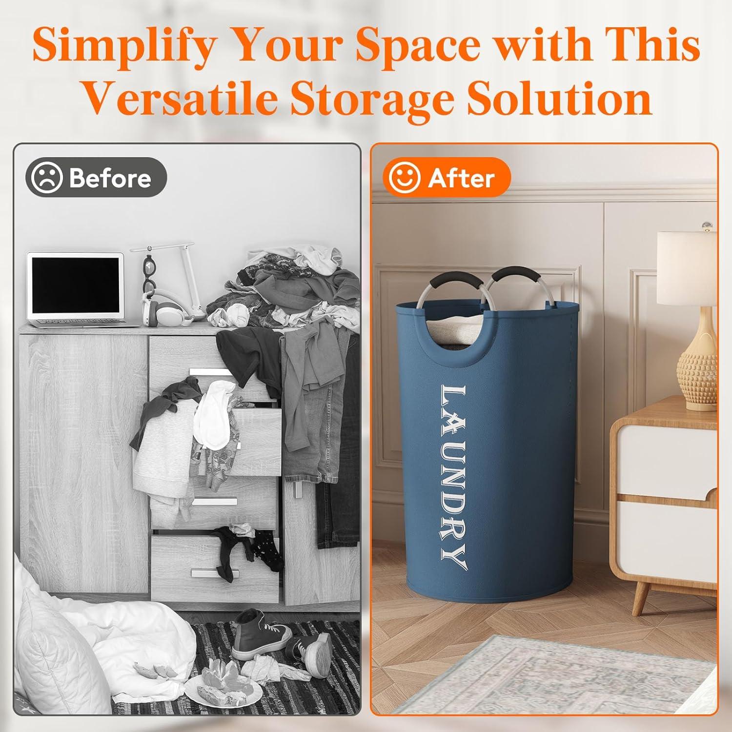 Stands Tall yet Folds Small: This laundry hamper with handles stands upright even when empty, making it convenient for filling. It can also be folded and stored in a small, portable size to save space when not in use.