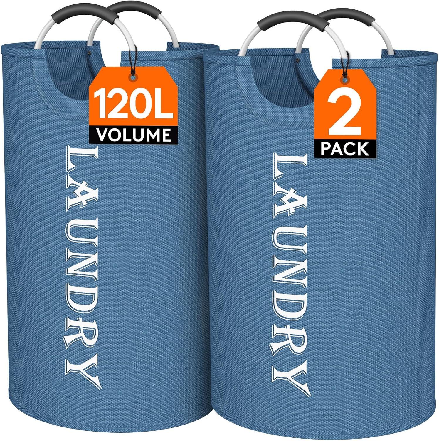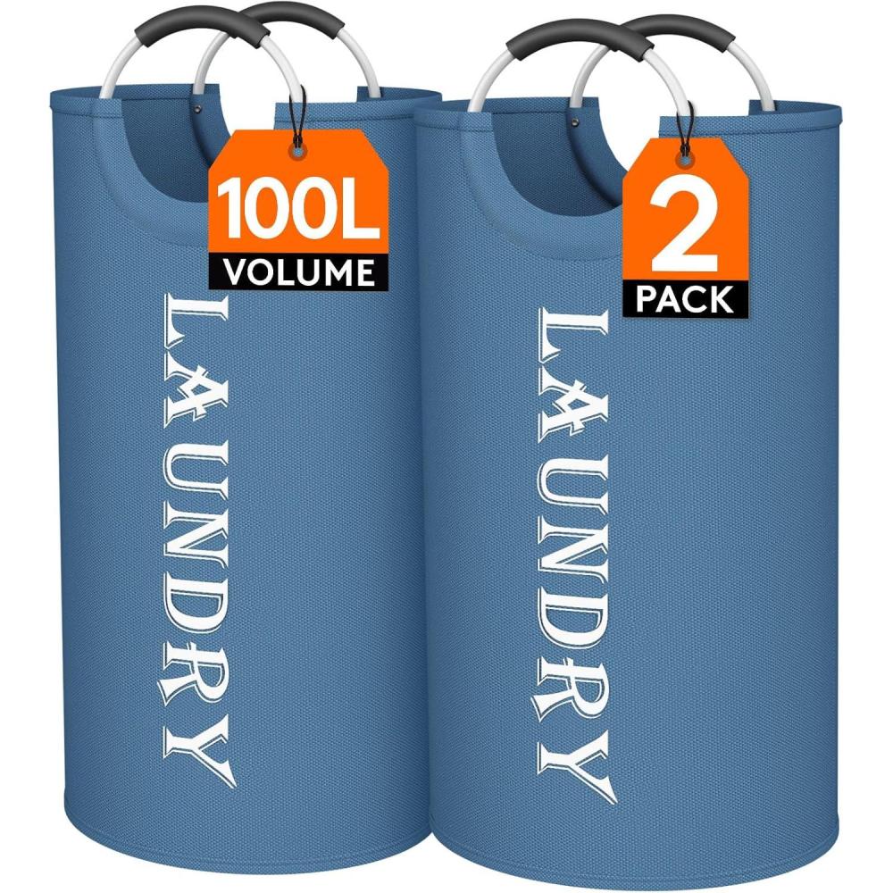 Lifewit 100L 2-Pack Large Laundry Basket, Collapsible Laundry Hamper with Aluminum Handles, Waterproof Freestanding Dirty Clothes Hampers for Laundry Room Bedroom Dorm Bathroom, Black(Blue)