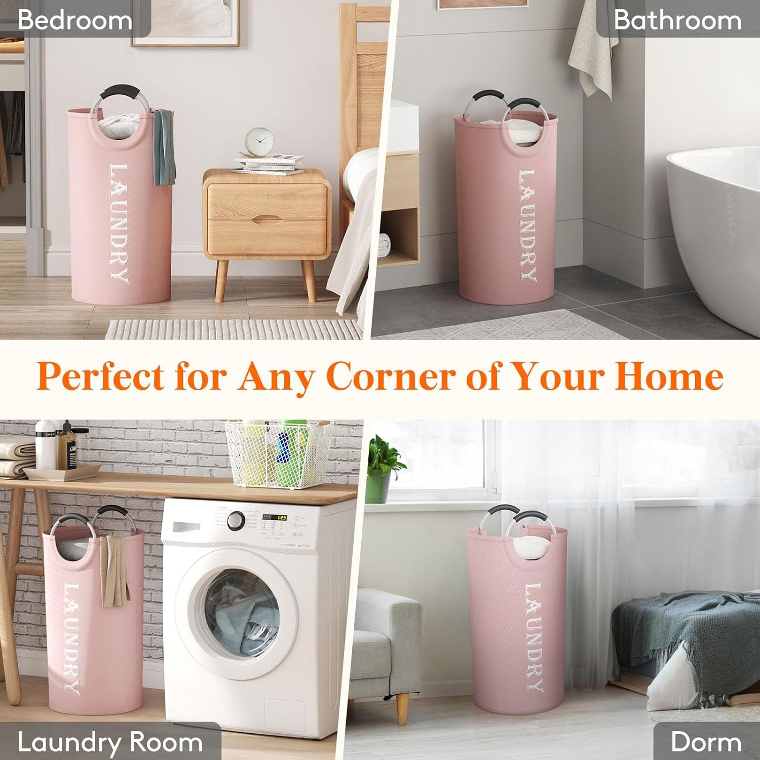 Stands Tall yet Folds Small: This laundry hamper with handles stands upright even when empty, making it convenient for filling. It can also be folded and stored in a small, portable size to save space when not in use.