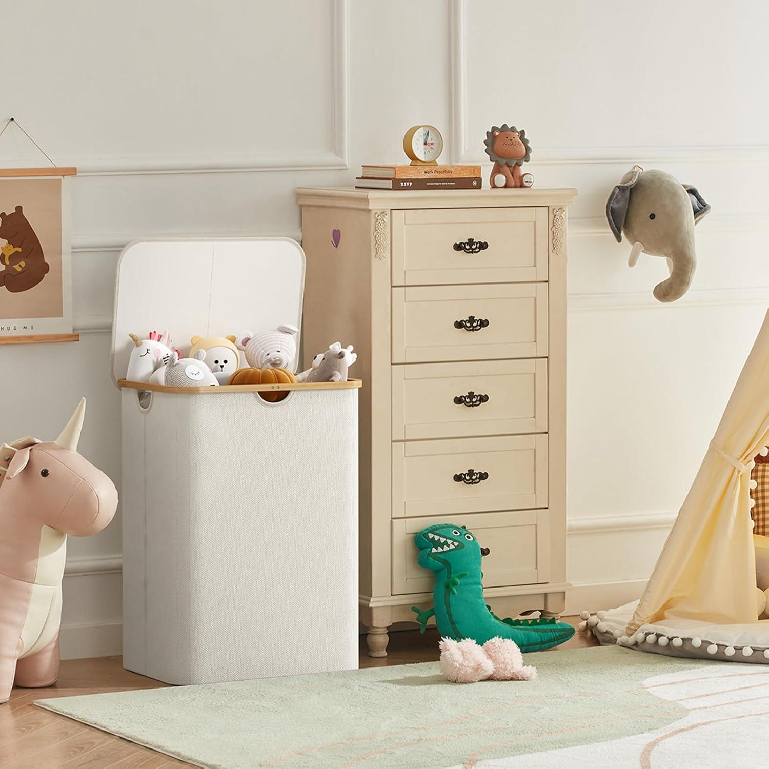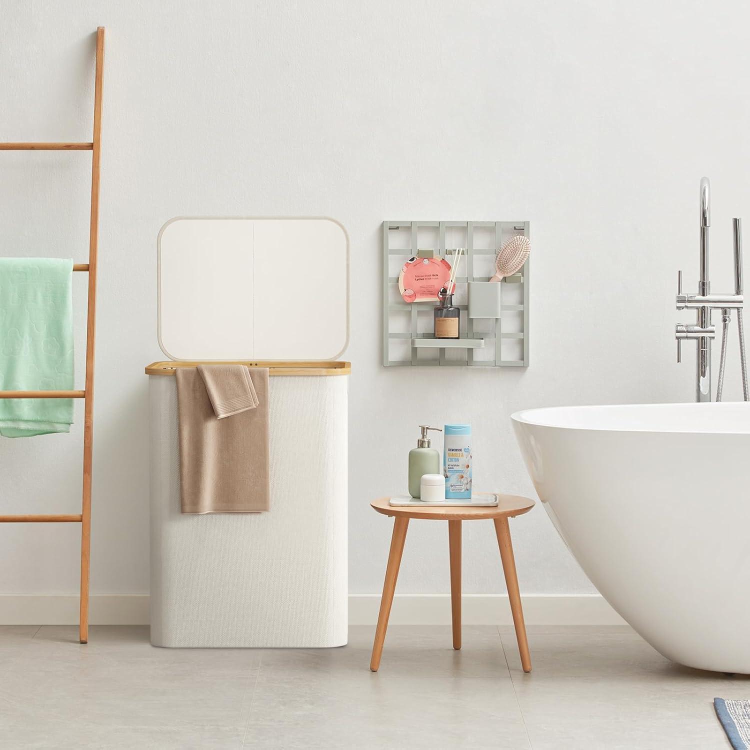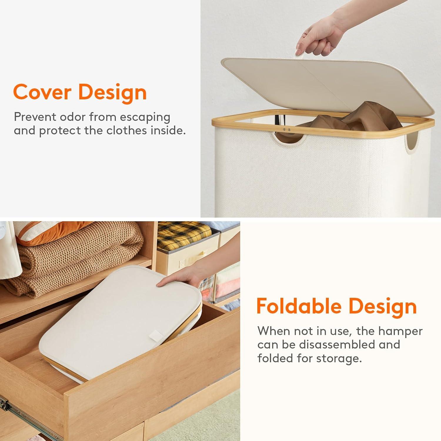 Lifewit 100L Laundry Basket with Lid, Clothes Hampers for Laundry with Bamboo Handles and A Removable Bag, Large Foldable Laundry Hamper for Bedroom, Bathroom, Dorm, Laundry Room, Beige(Off White)