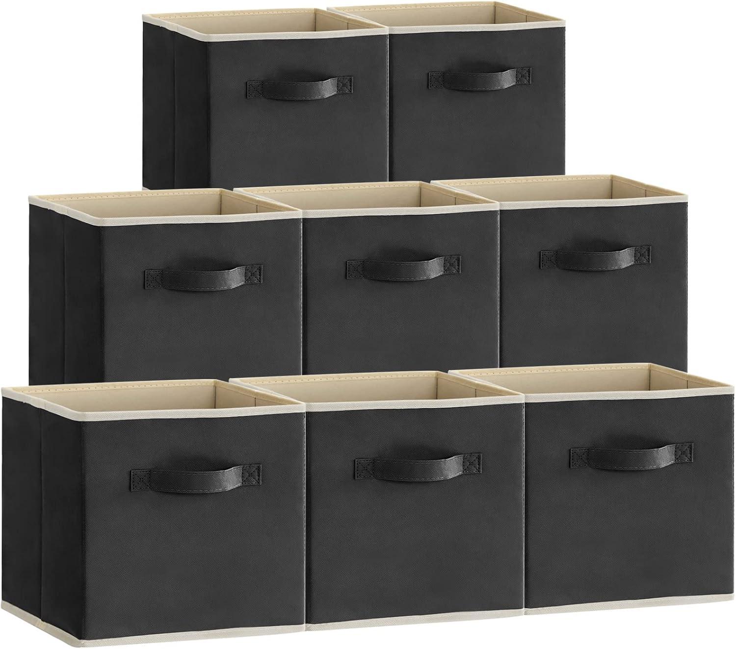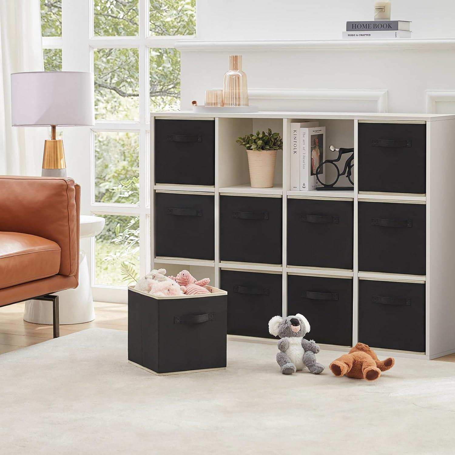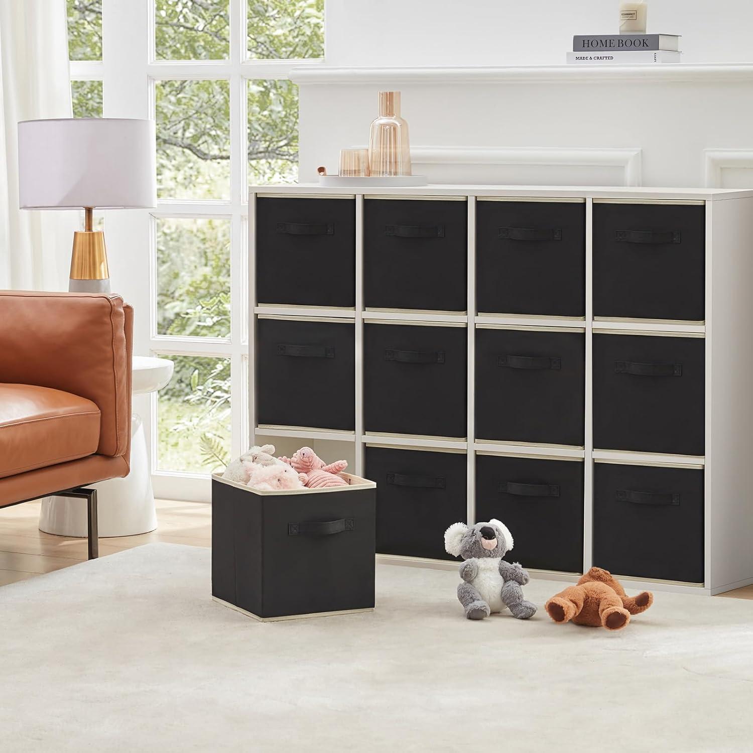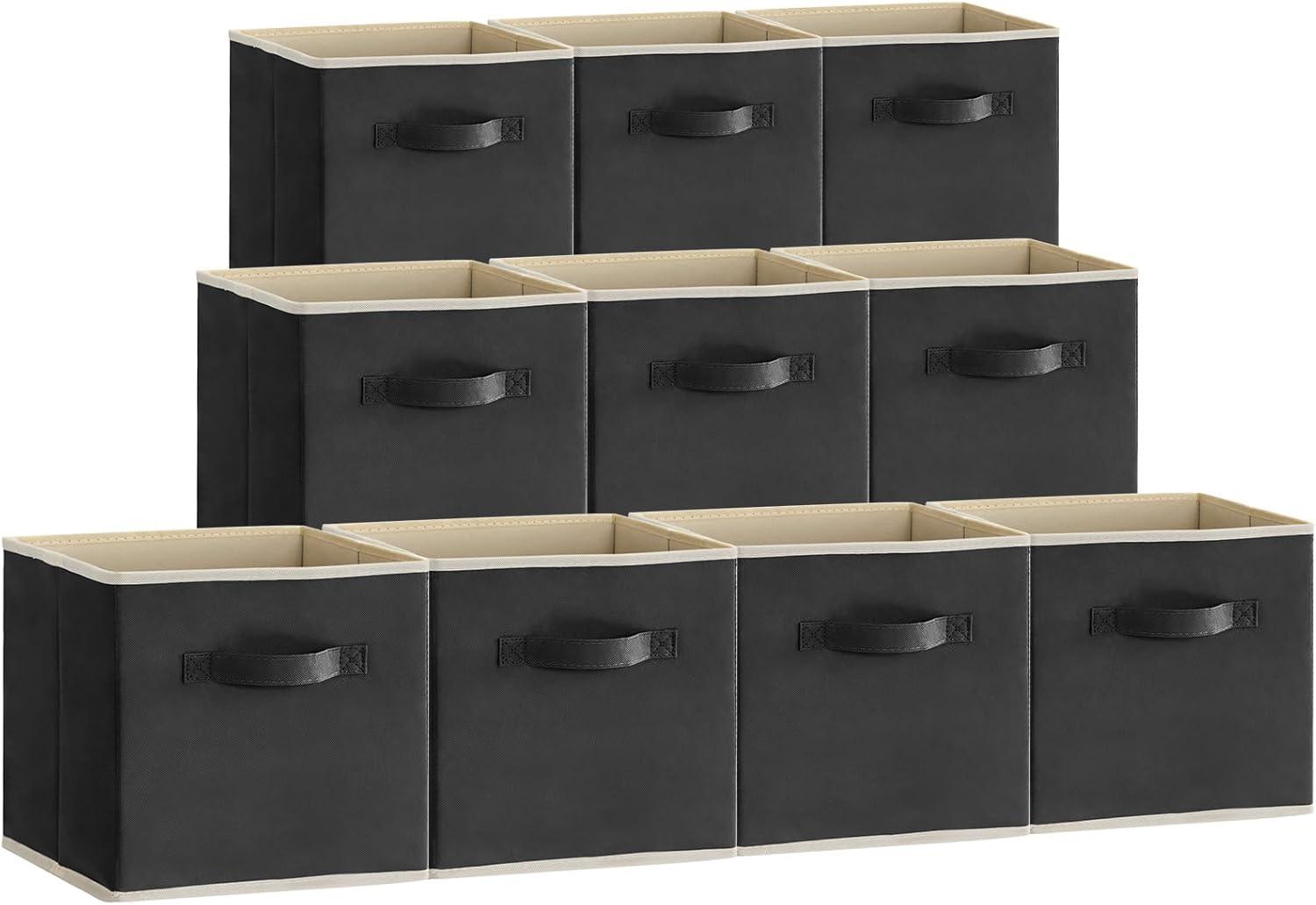 Lifewit 12 Packs Storage Cubes, 11 Inch Cube Storage Bins, Foldable Decorative Fabric Storage Baskets for Organizing Home Organizers with Handles for Shelves, Closet, Grey(Black)