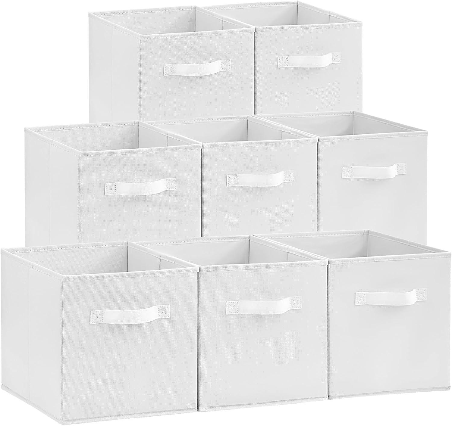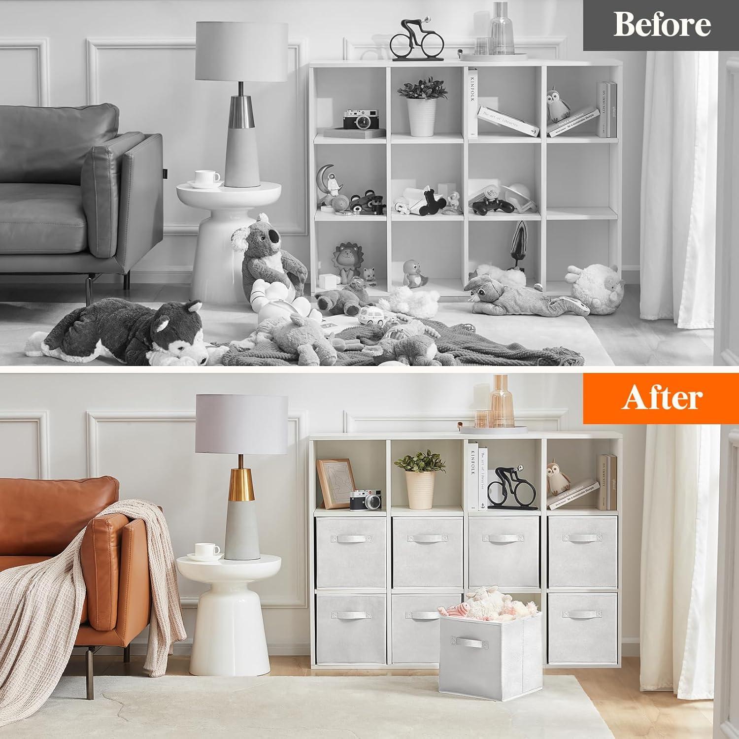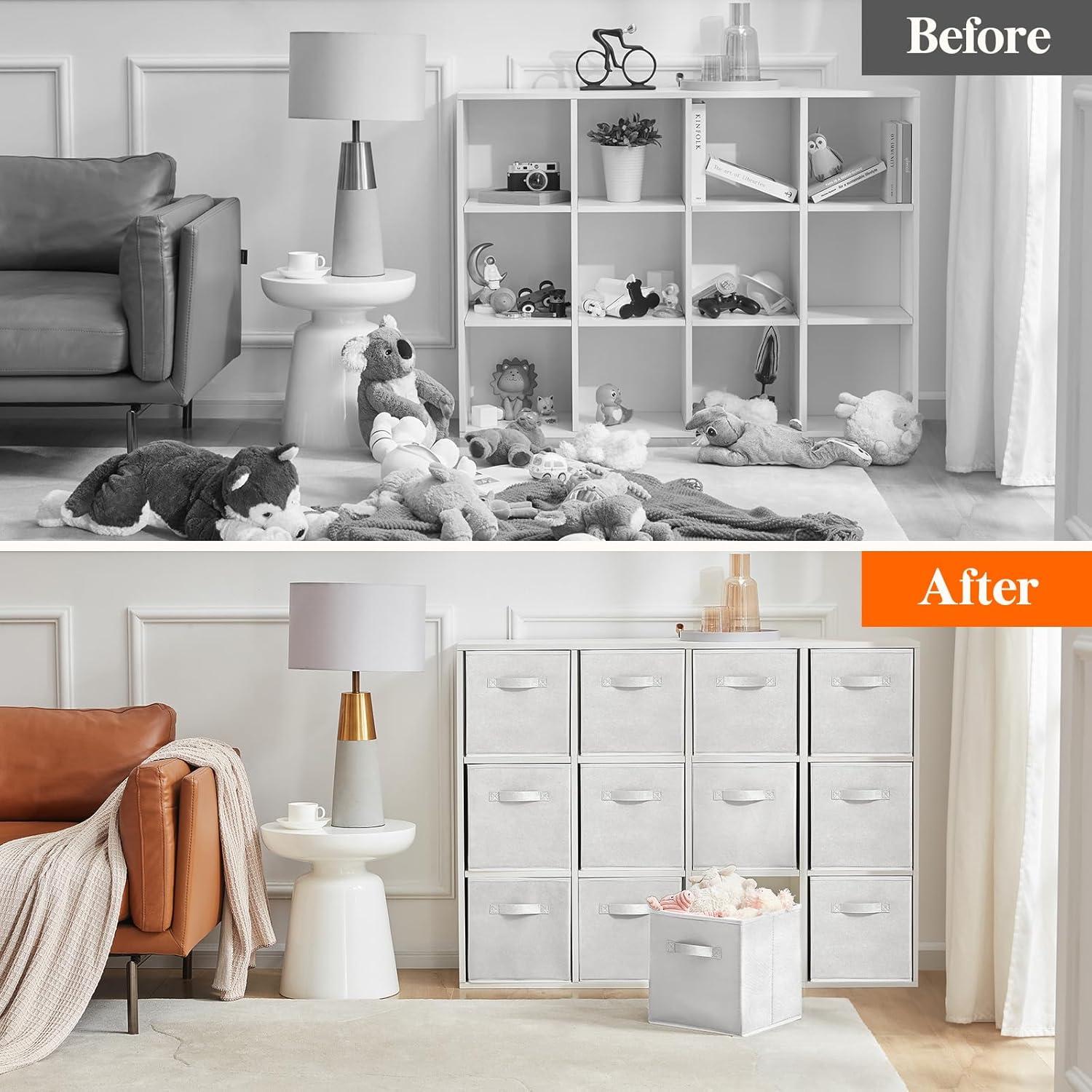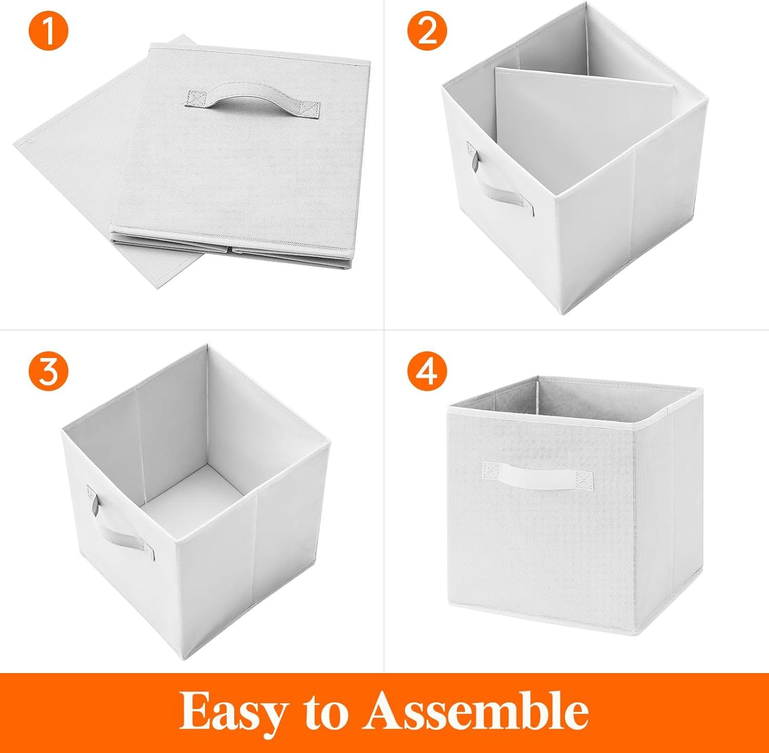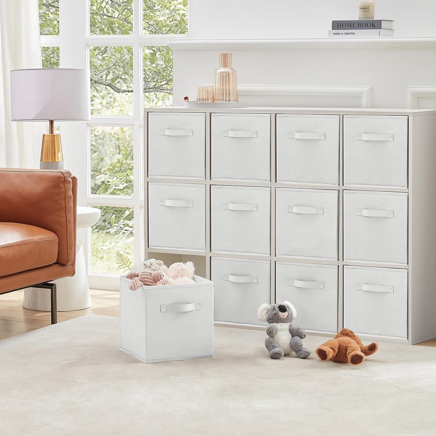 Lifewit 12 Packs Storage Cubes, 11 Inch Cube Storage Bins, Foldable Decorative Fabric Storage Baskets for Organizing Home Organizers with Handles for Shelves, Closet, Grey(White)