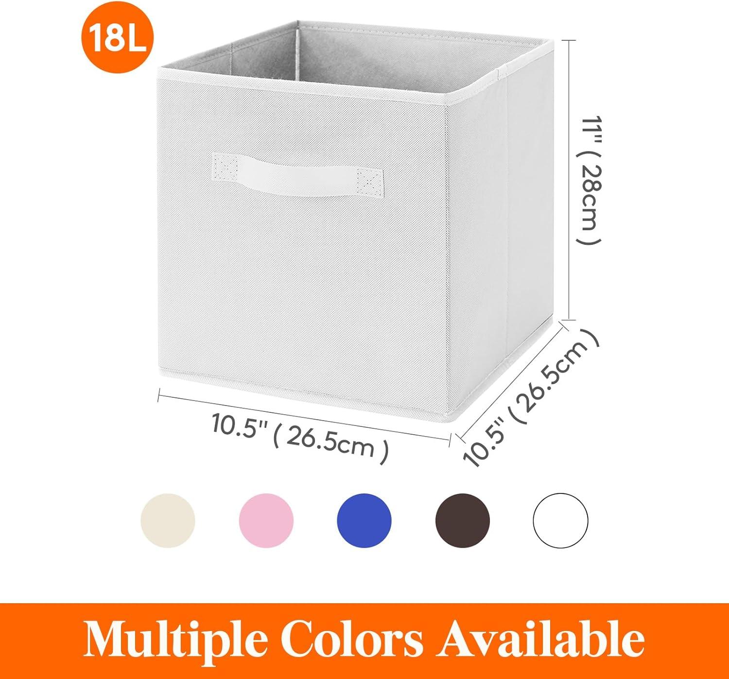 Package Includes: 10.5″L x 10.5″W x 11″H (18L) comes in 12 pack. You can rest assured that these foldable storage cubes will fit into most closet sizes.