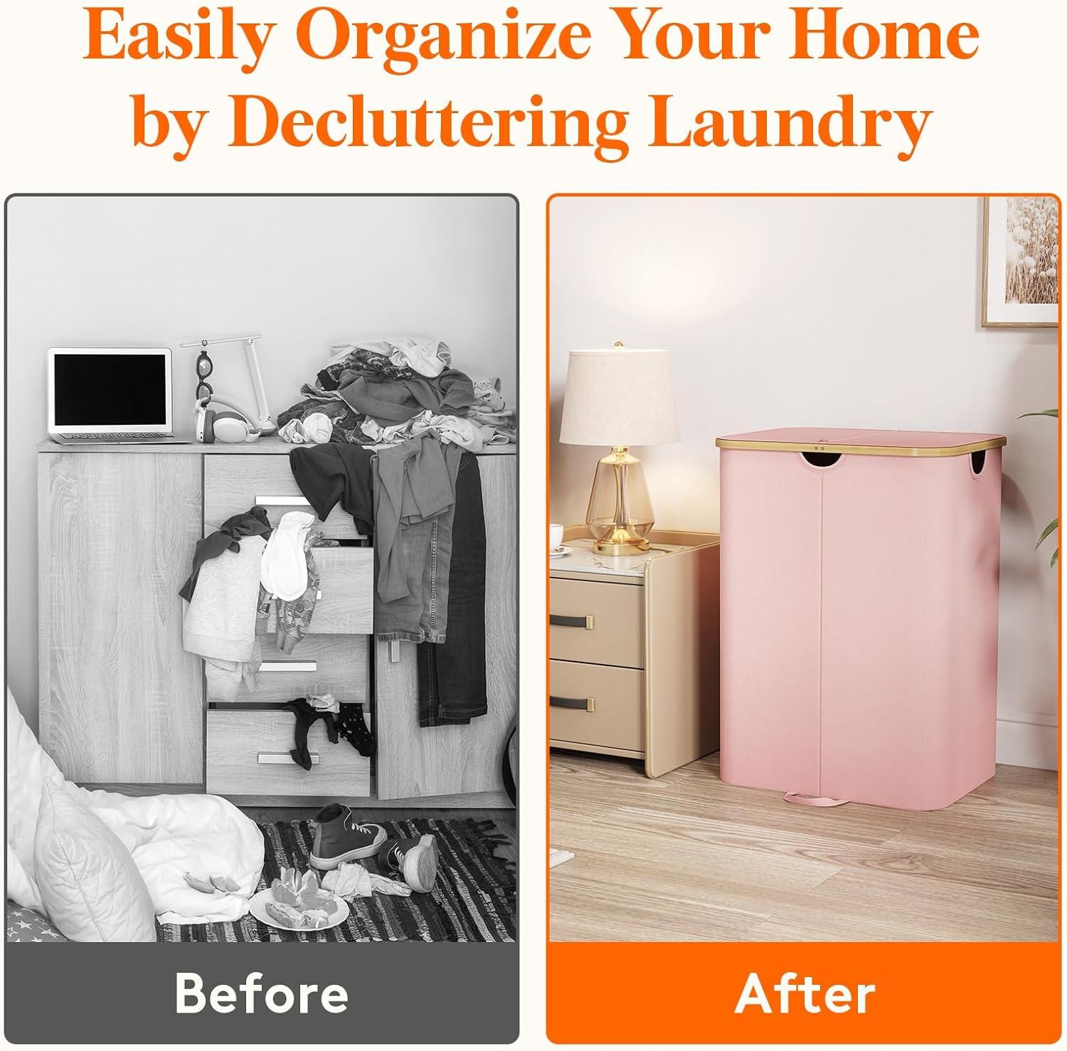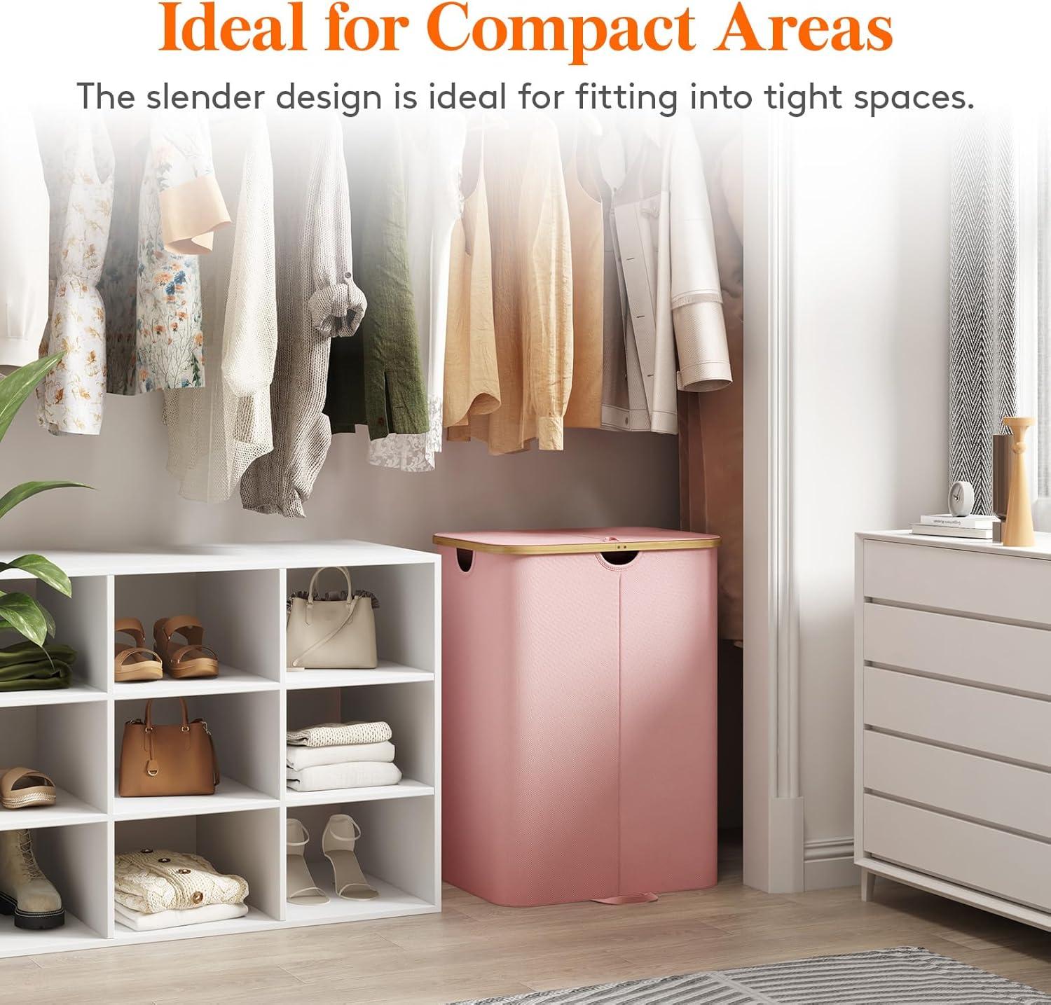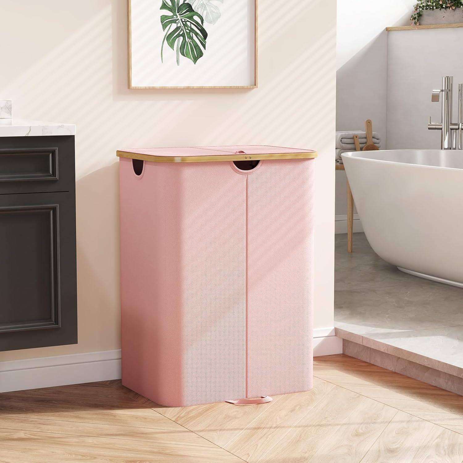Lifewit 120L Double Laundry Hamper with Lid, Large Dual Laundry Basket Removable Bags, 2 Sections Aesthetic Clothes Hampers for Laundry with Bamboo Handles for Bedroom Bathroom Dorm, Black(Pink)