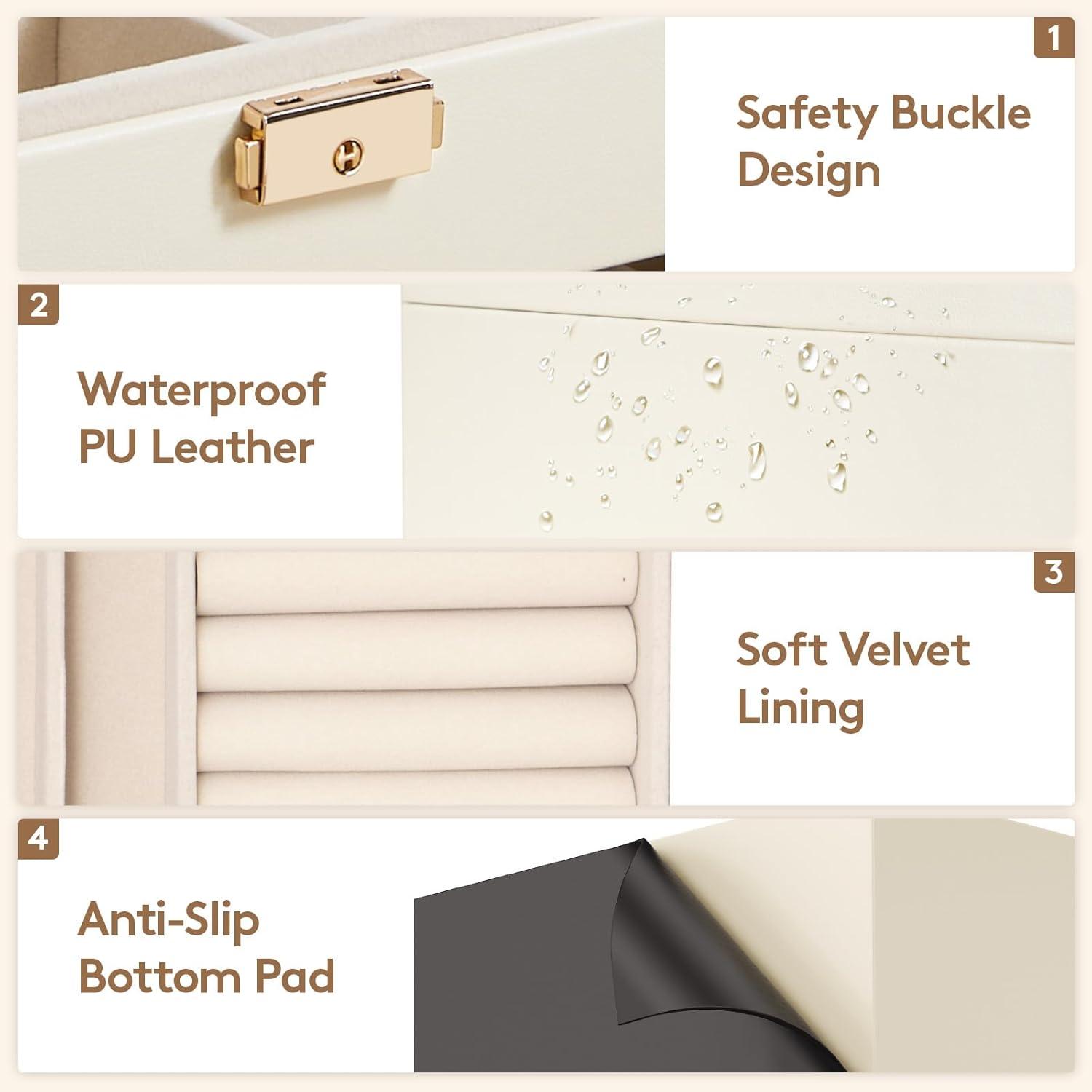 Premium Material: Sturdy MDF board and waterproof PU leather with a shiny metal handle exudes elegance and offers a scratch-free velvet interior for jewelry