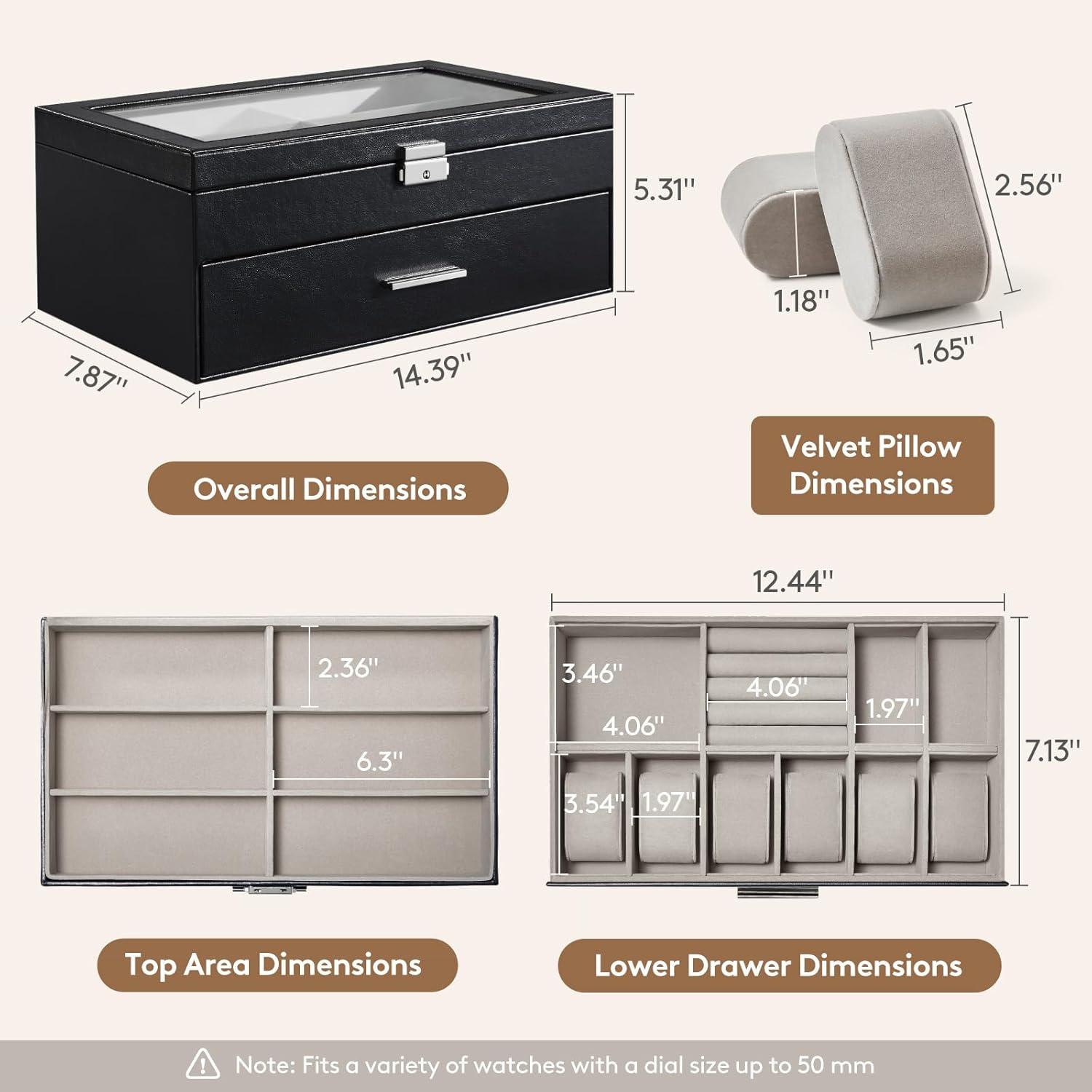 Visible Glass Window: The transparent glass cover of this watch box allows quick identification of your items and protects them from dust