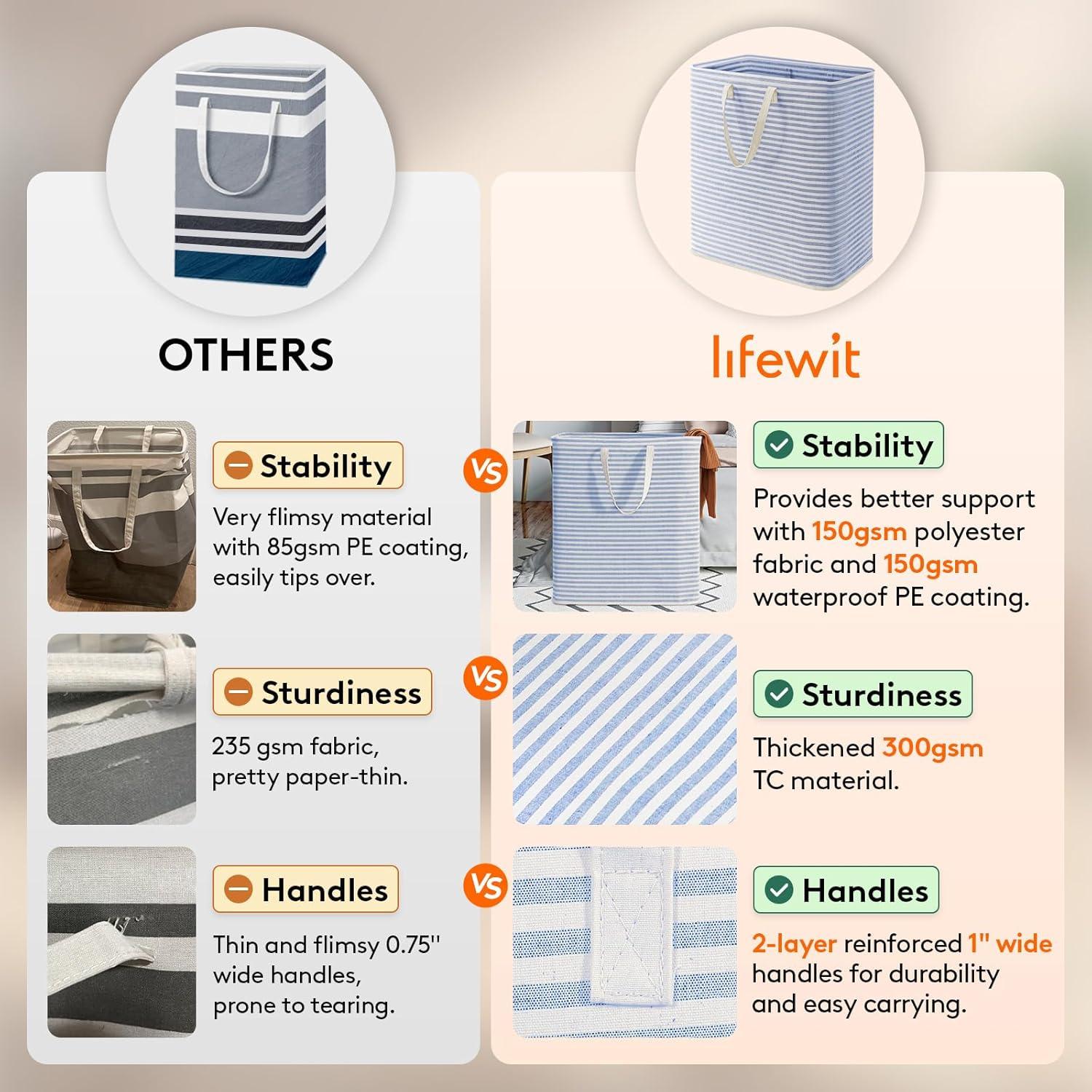 Lifewit 2 Pack Laundry Hamper Large Collapsible Laundry Baskets, Freestanding Waterproof Clothes Hamper with Easy Carry Handles in Laundry Room Bedroom Bathroom College Dorm for Adults, Grey, 2 x 80L(Blue)