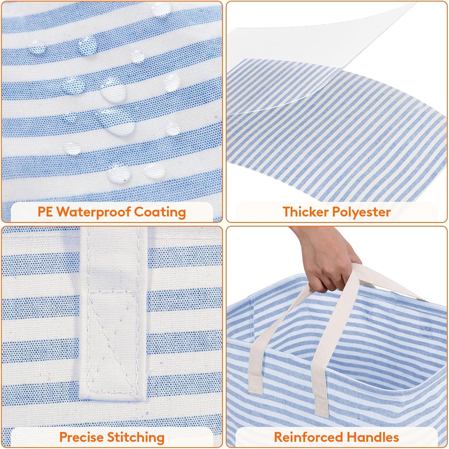 Premium Material: The foldable clothes basket is made from thick polyester and primuin cotton. The interior features PE waterproof coating can keep stored items dry. Simply use a wet cloth to wipe off the dirt. Do not clean it in washing machine and dryer, as doing so may damage the leakproof PE coating.