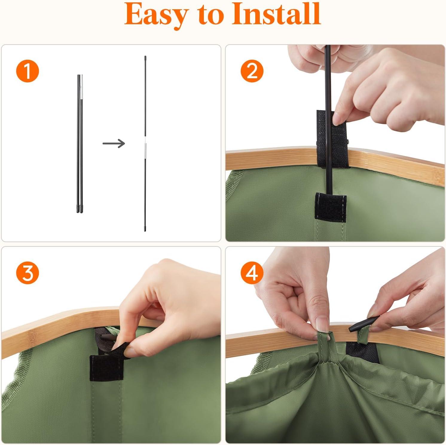 Freestanding Structure: With a sturdy iron wire frame sewn into the top edges, simply stretch the dirty clothes hamper out and it will stand upright on its own. For stability, please ensure the hamper remains upright without placing any clothes on the edge and place clothes evenly within the hamper to maintain balance and keep it from collapsing.