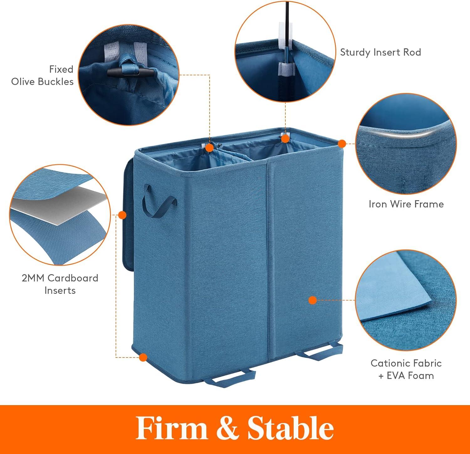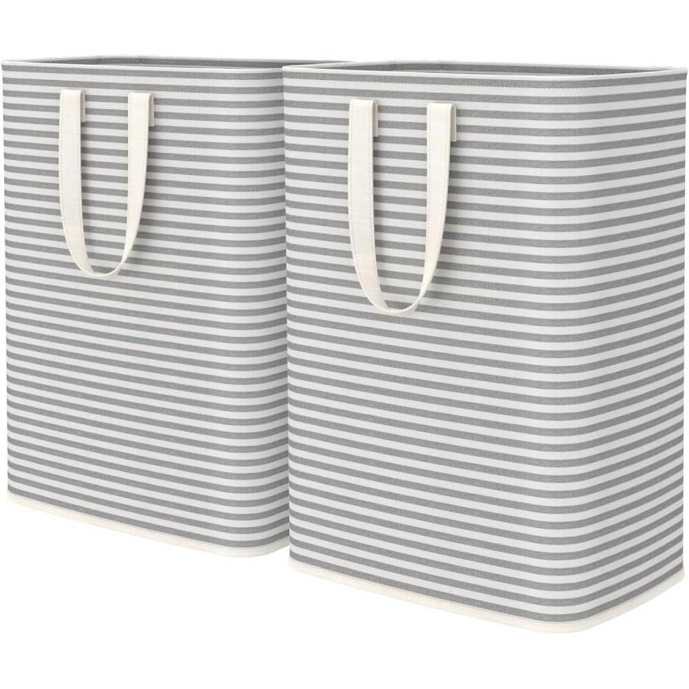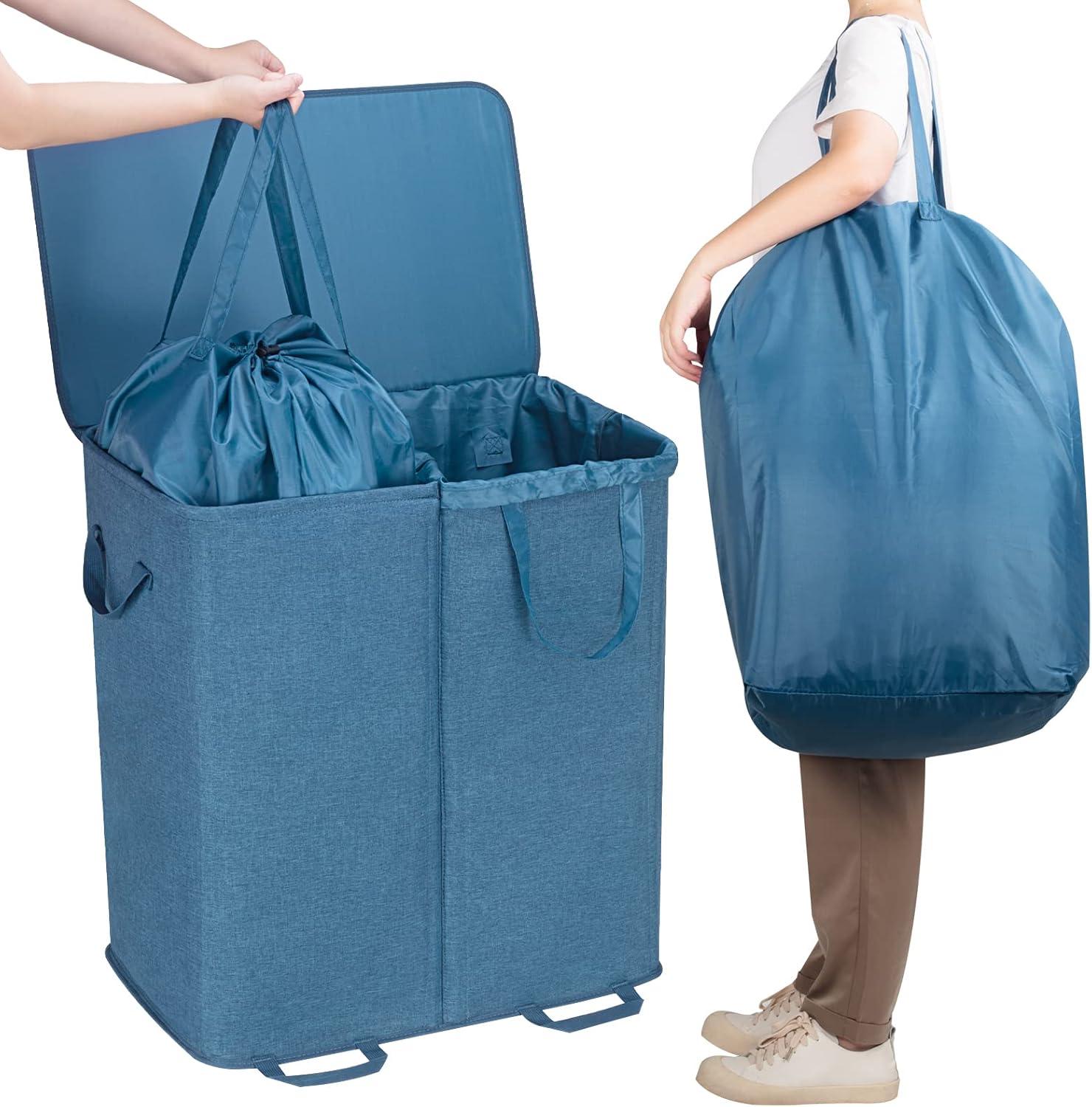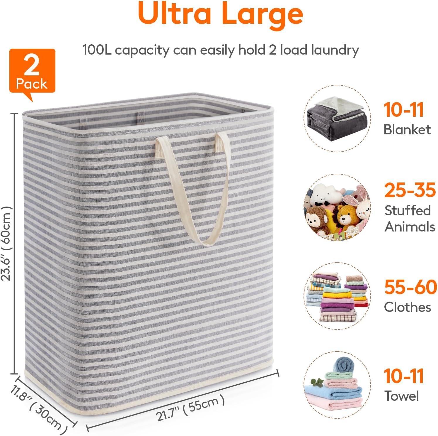Ultra Large: The laundry hamper measures 15.7 x 11.8 x 26.4 inches (L x W x H) with a capacity of 80L and 2 of set which easily contains 1.5×2 loads of laundry. It can hold a lot of items such as dirty clothes, wet towels, sheets, etc.