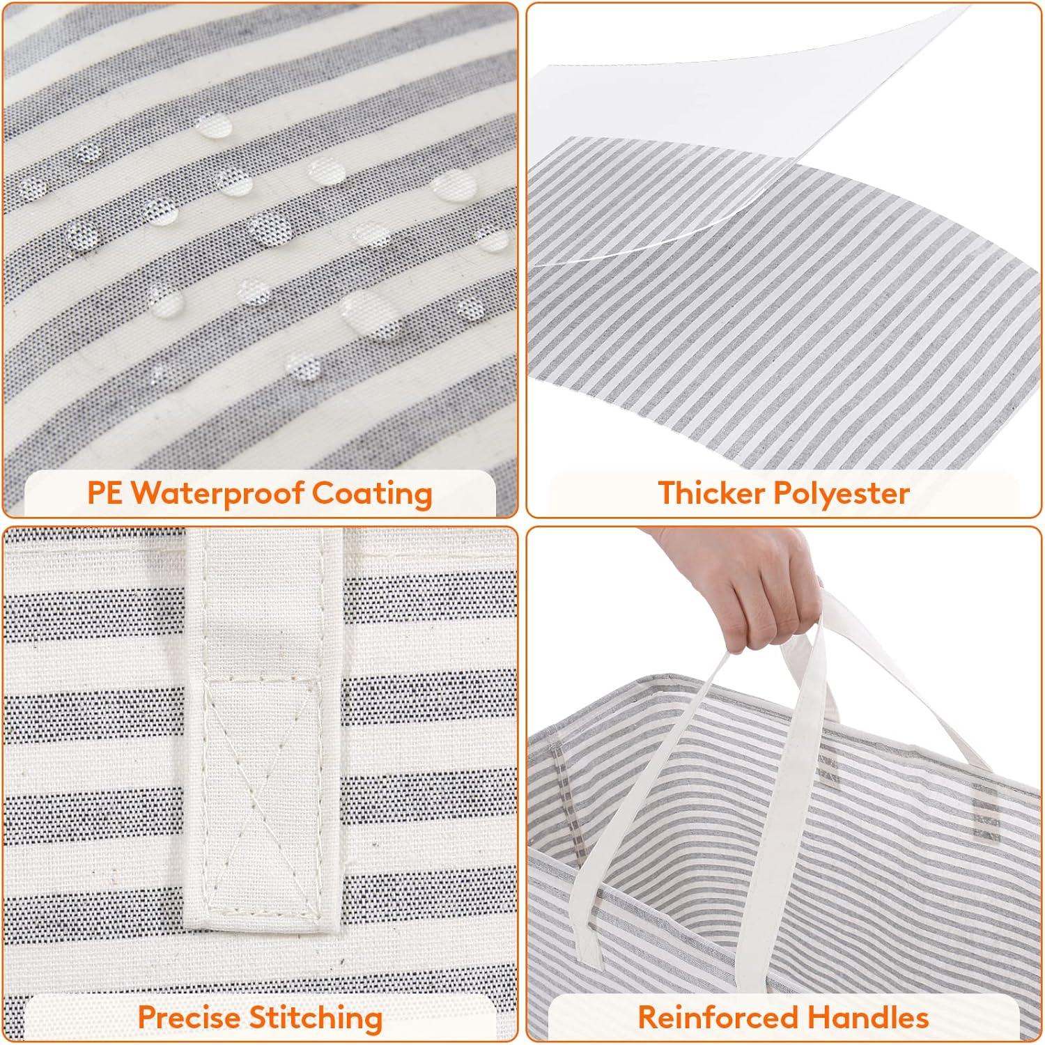 Premium Material: The foldable clothes basket is made from thick polyester and primuin cotton. The interior features PE waterproof coating can keep stored items dry. Simply use a wet cloth to wipe off the dirt. Do not clean it in washing machine and dryer, as doing so may damage the leakproof PE coating.