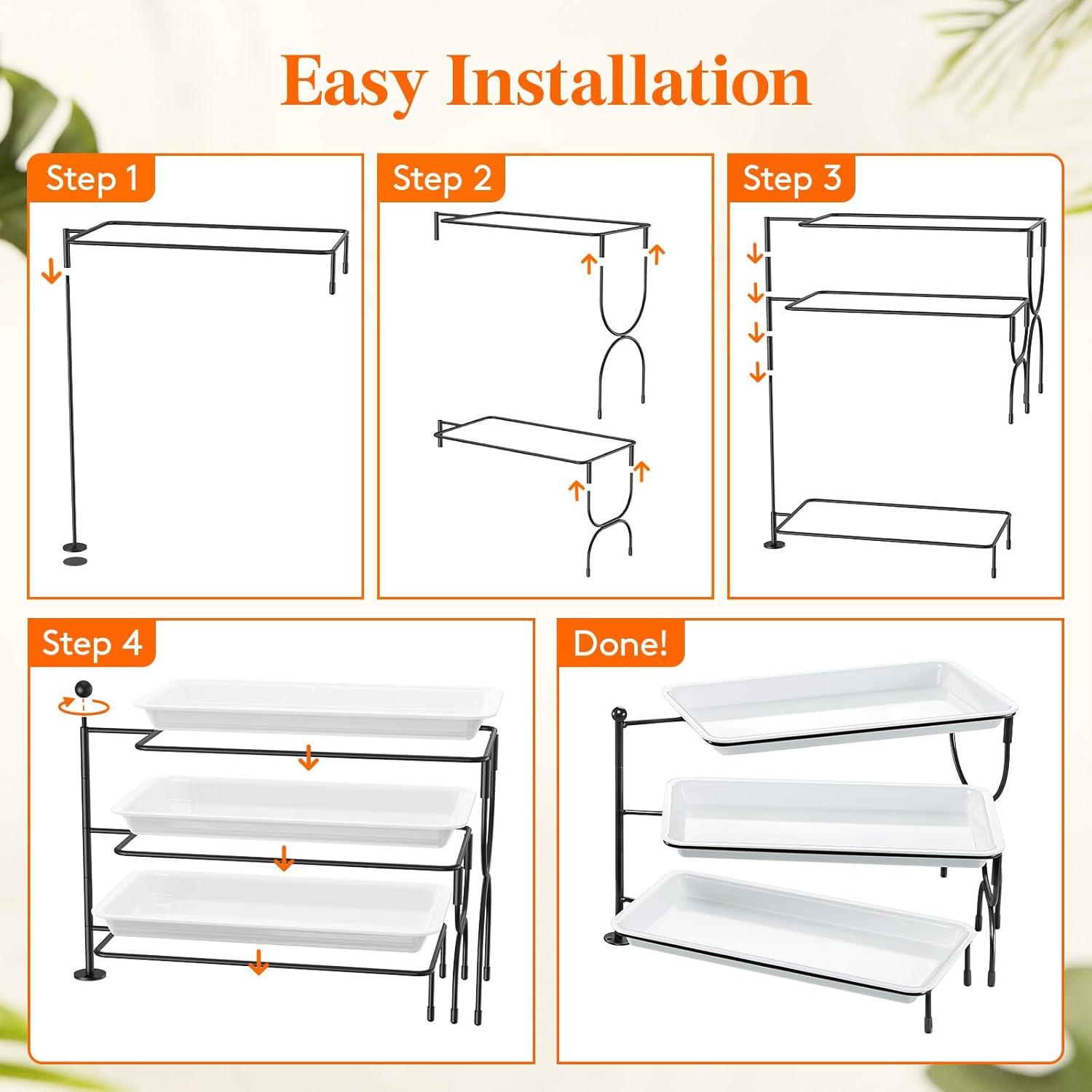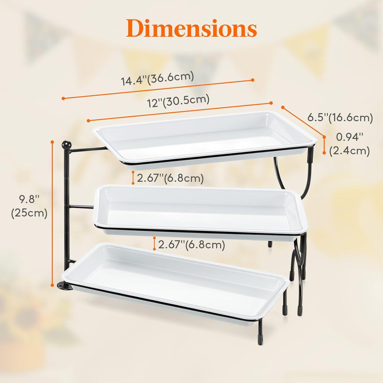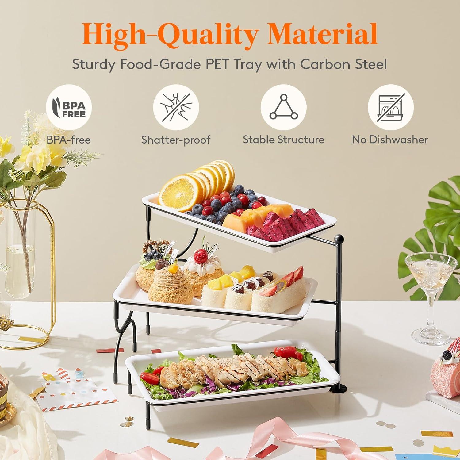 Save Space: The 3 tiered serving tray features a 3-tier design that maximizes vertical space, adding elevation to your food display. It efficiently utilizes limited table space while presenting the food in an organized and appealing manner. When not in use, the trays can be stacked for easy storage.