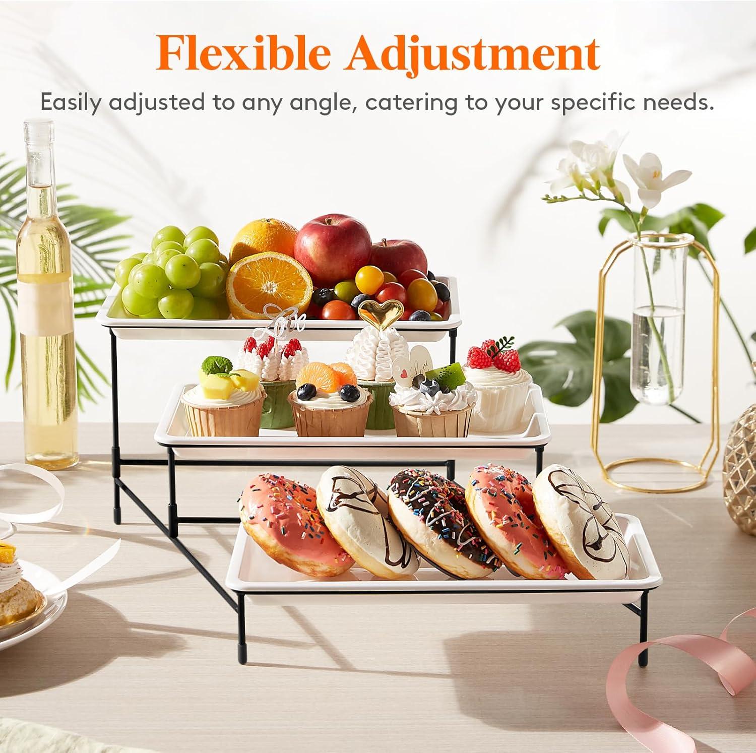 Stable Stand: The sturdy and flexible stand can be easily adjusted to any angle, catering to your specific needs. Its rubber feet provide a non-slip grip, improving table service organization. This ensures that guests at your event can conveniently access a variety of treats from all sides.