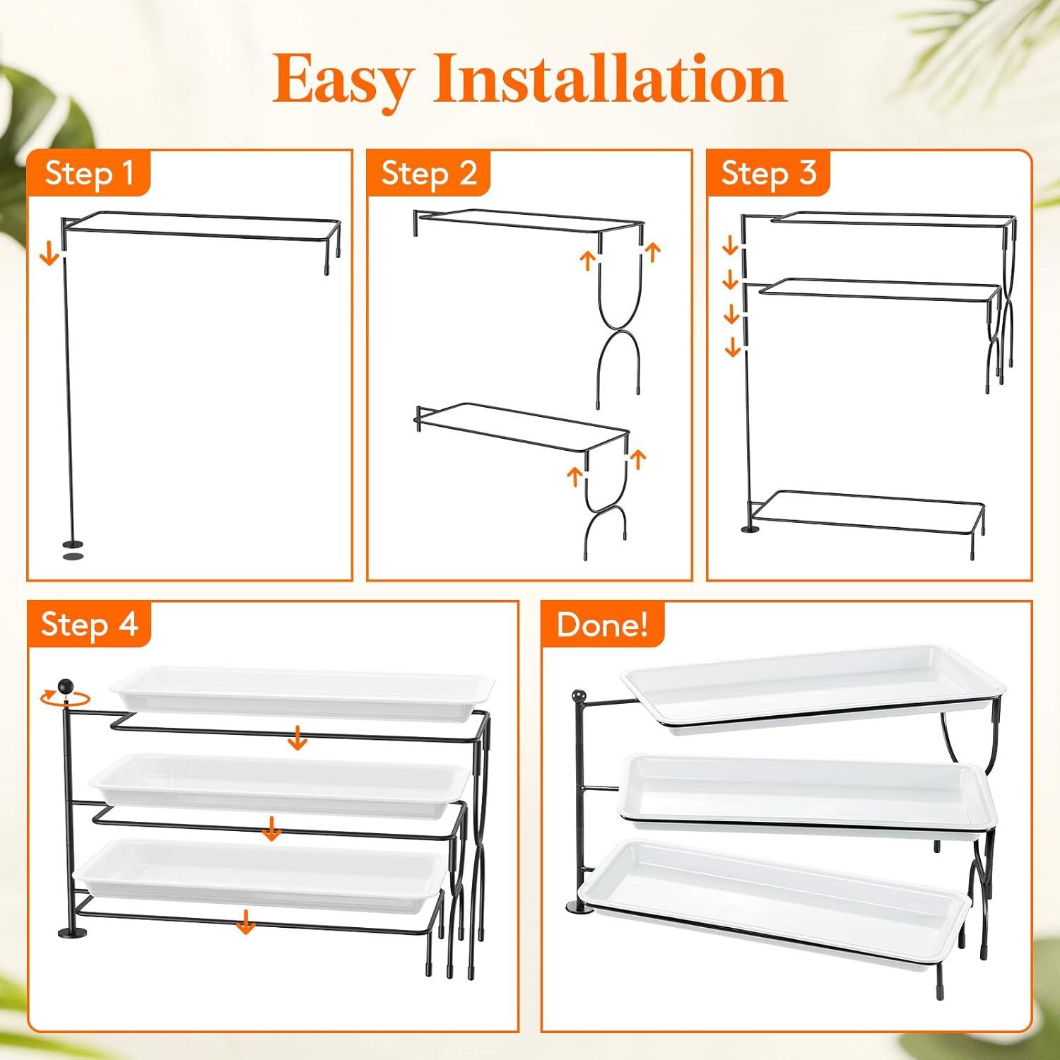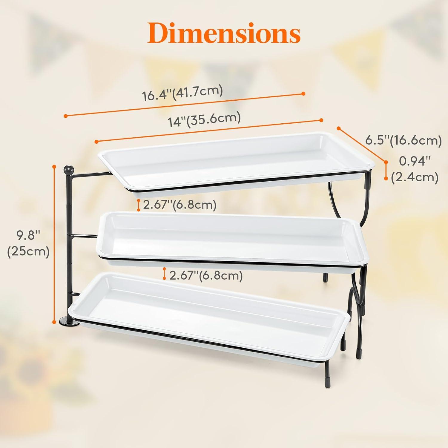 Lifewit 3 Tier Serving Tray, 12″ x 6.5″ White Plastic Tiered Food Serving Platters, Tiered Tray Stand for Party with Black Collapsible Metal Stand, Dessert Display Stands for Cookies, Crackers(14″ x 6.5″)