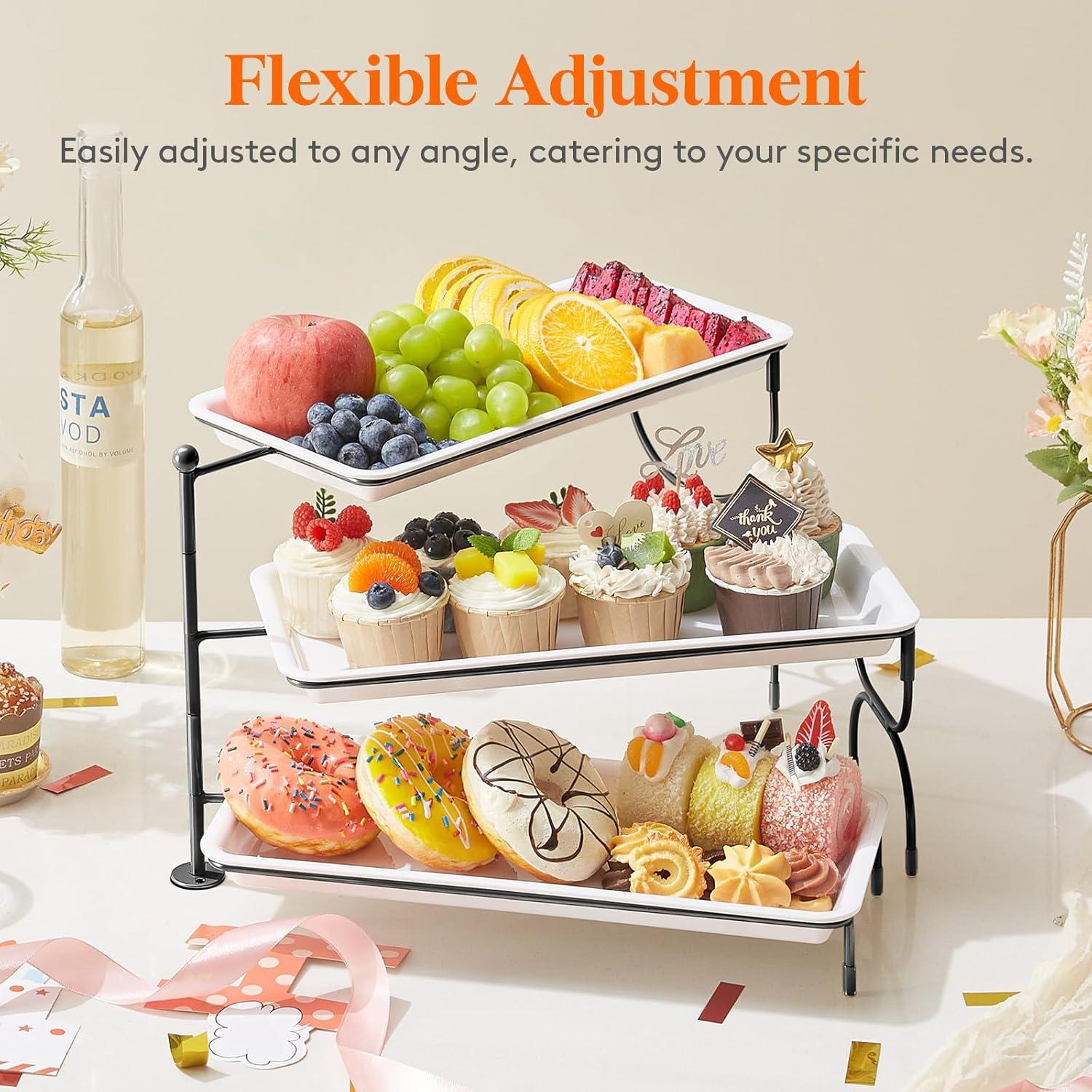 Stable Stand: The sturdy and flexible stand can be easily adjusted to any angle, catering to your specific needs. Its rubber feet provide a non-slip grip, improving table service organization. This ensures that guests at your event can conveniently access a variety of treats from all sides.
