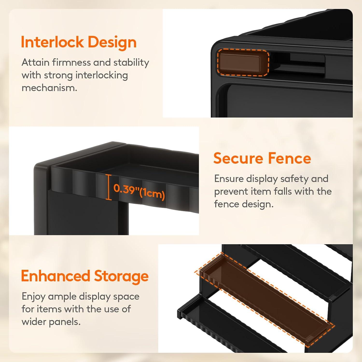 Fence Design: Each shelf of the perfume organizer is equipped with a fence that prevents items from falling or getting damaged during slight vibrations or movements, ensuring that your perfumes or any other items stay securely in place
