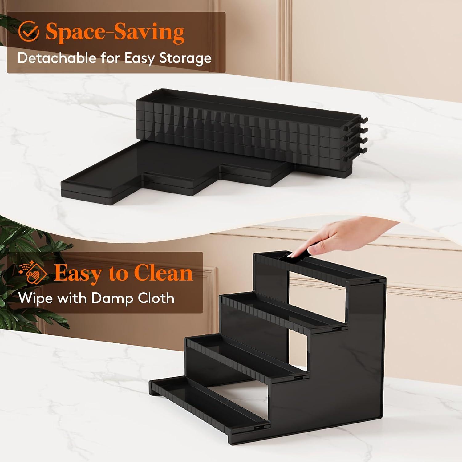 Lifewit 4 Tier Clear Display Riser Stand with Decorative Secure Fences, Tool-free Assembly, Plastic 12 Inch Perfume Organizer, Display for Figures, Cupcake, Dessert, 1-pack(Black)
